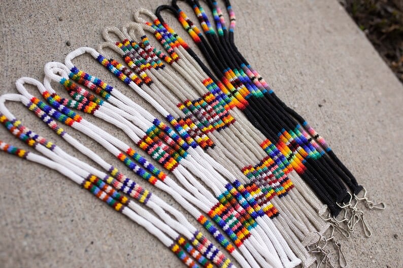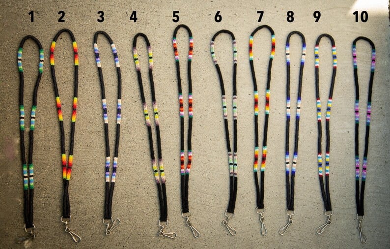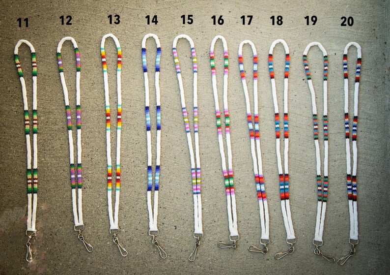 Stunning loom beaded lanyards done in a peyote style. All are handmade in a small loom with high-quality glass beads. Include a stainless steel clip to add keys, ID, or even a phone case. These can be worn by men or women. Very resistant. Please select your choice by using the photo as a reference.