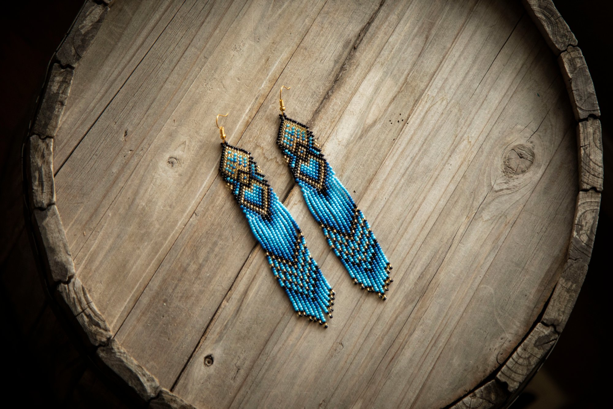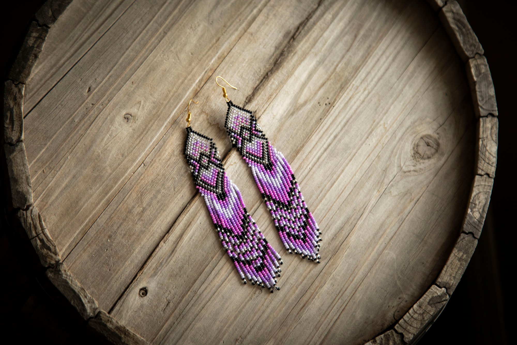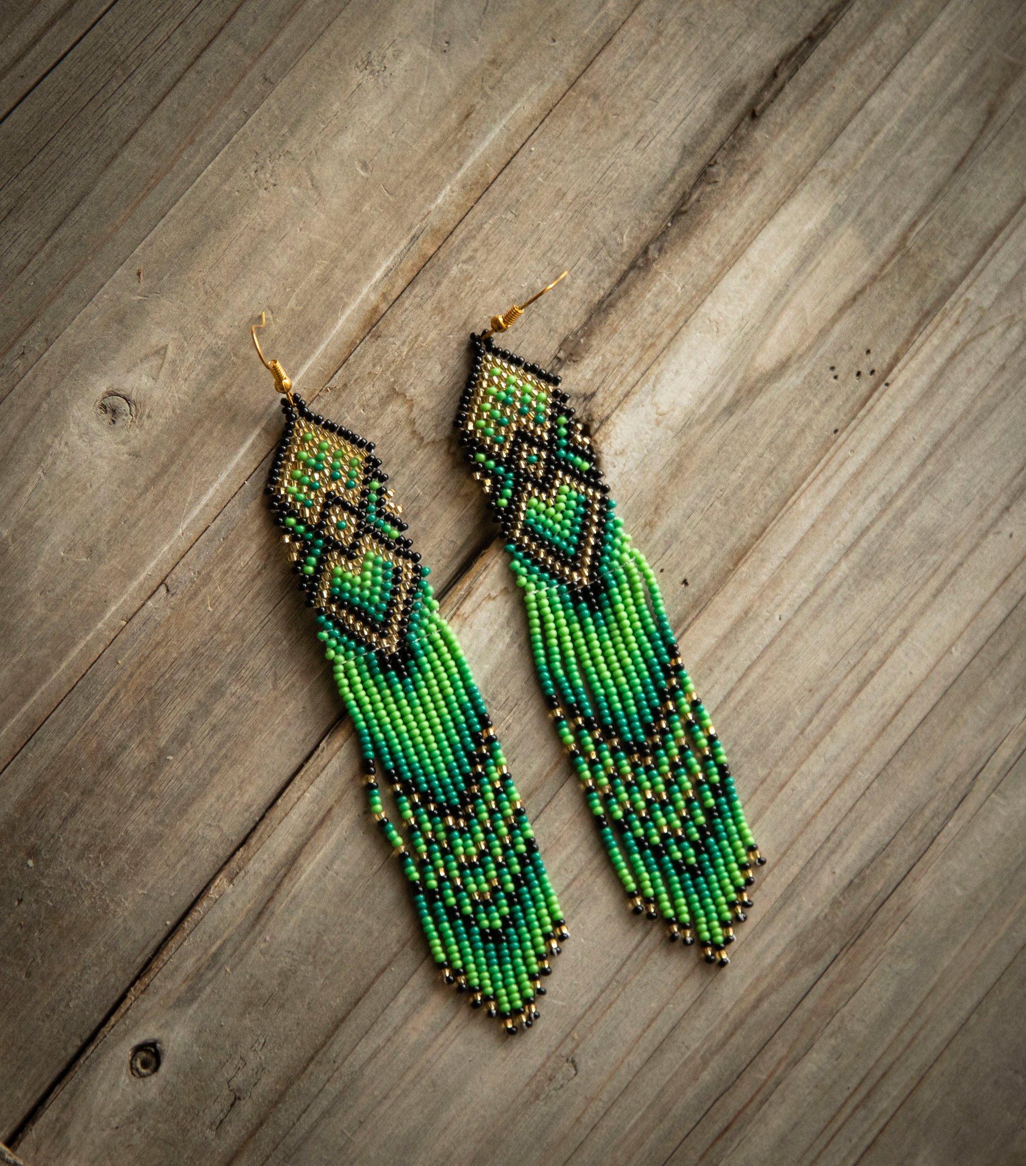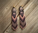 These long beautiful handmade earrings were made with high-quality glass beads. Each pair can take between 10 hours to be completed. A true piece of art!
