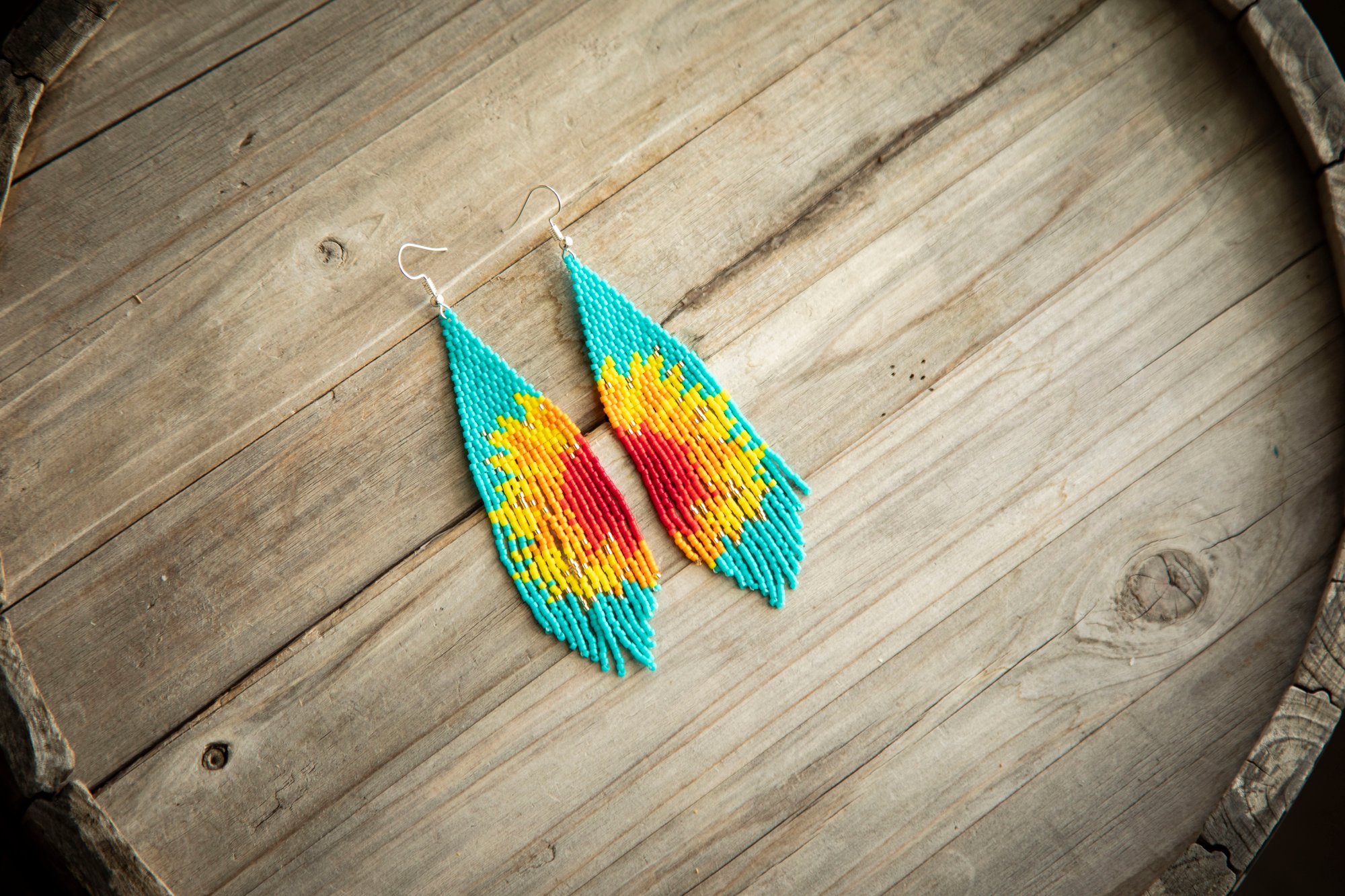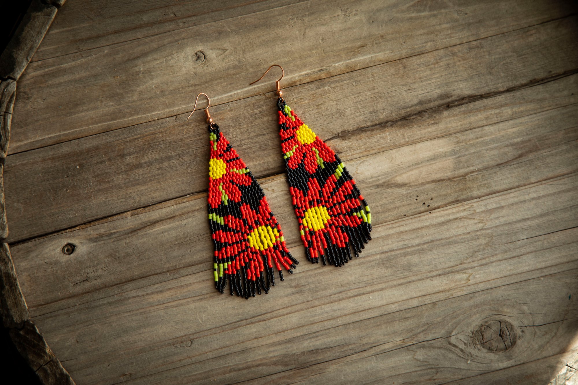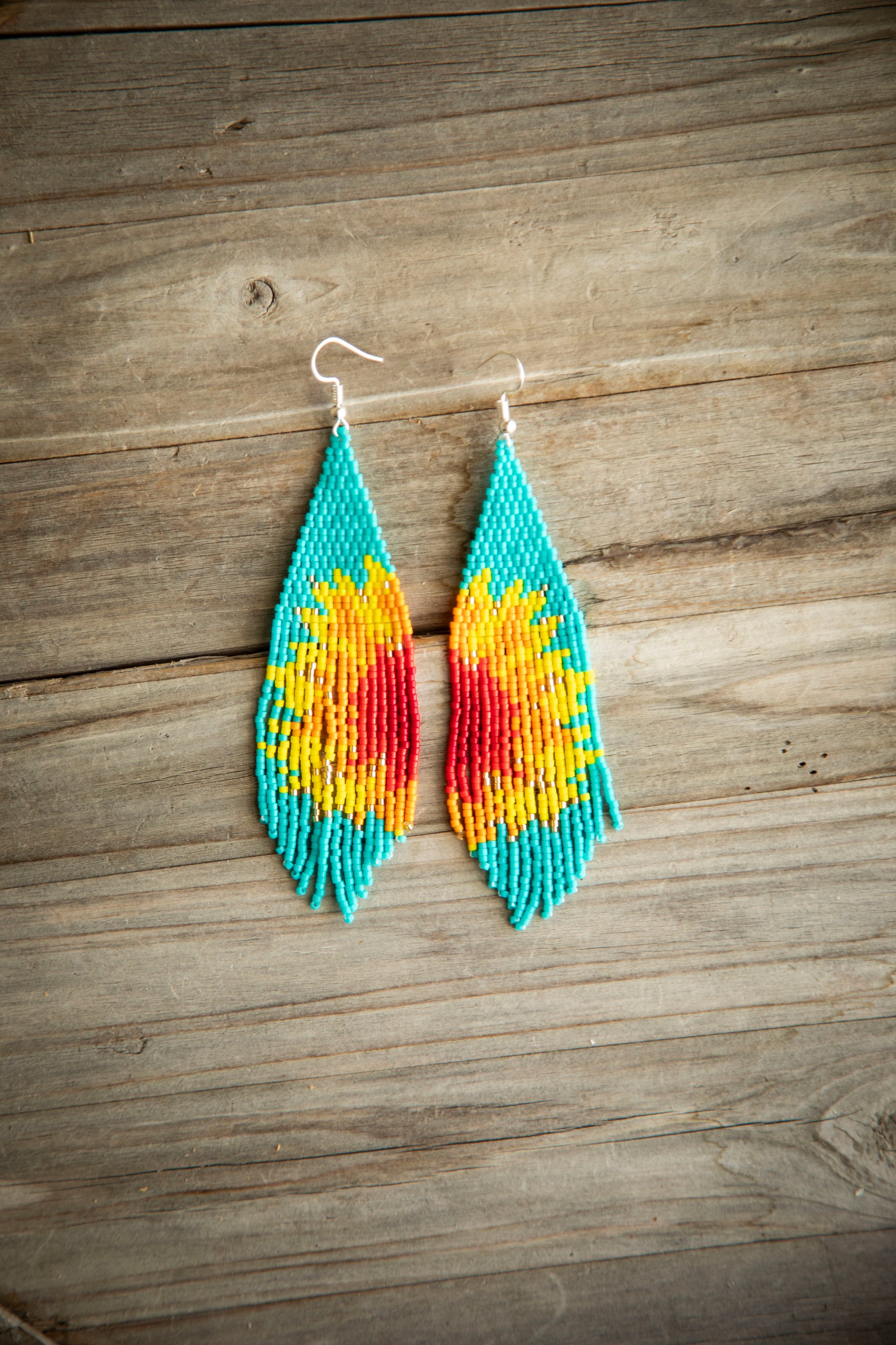 Stunning hand-beaded Huichol earrings made with the finest Delica Miyuki beads, which creates an elegant, lightweight, and unique style. These earrings are beautifully made by our team of Wikarika women from Nayarit. One of a kind. 100% Indigenous made.