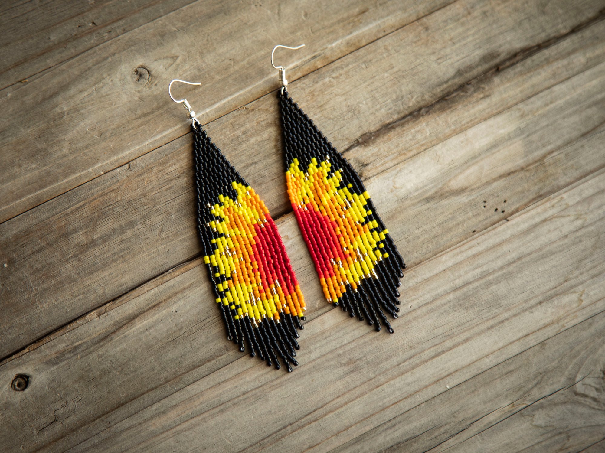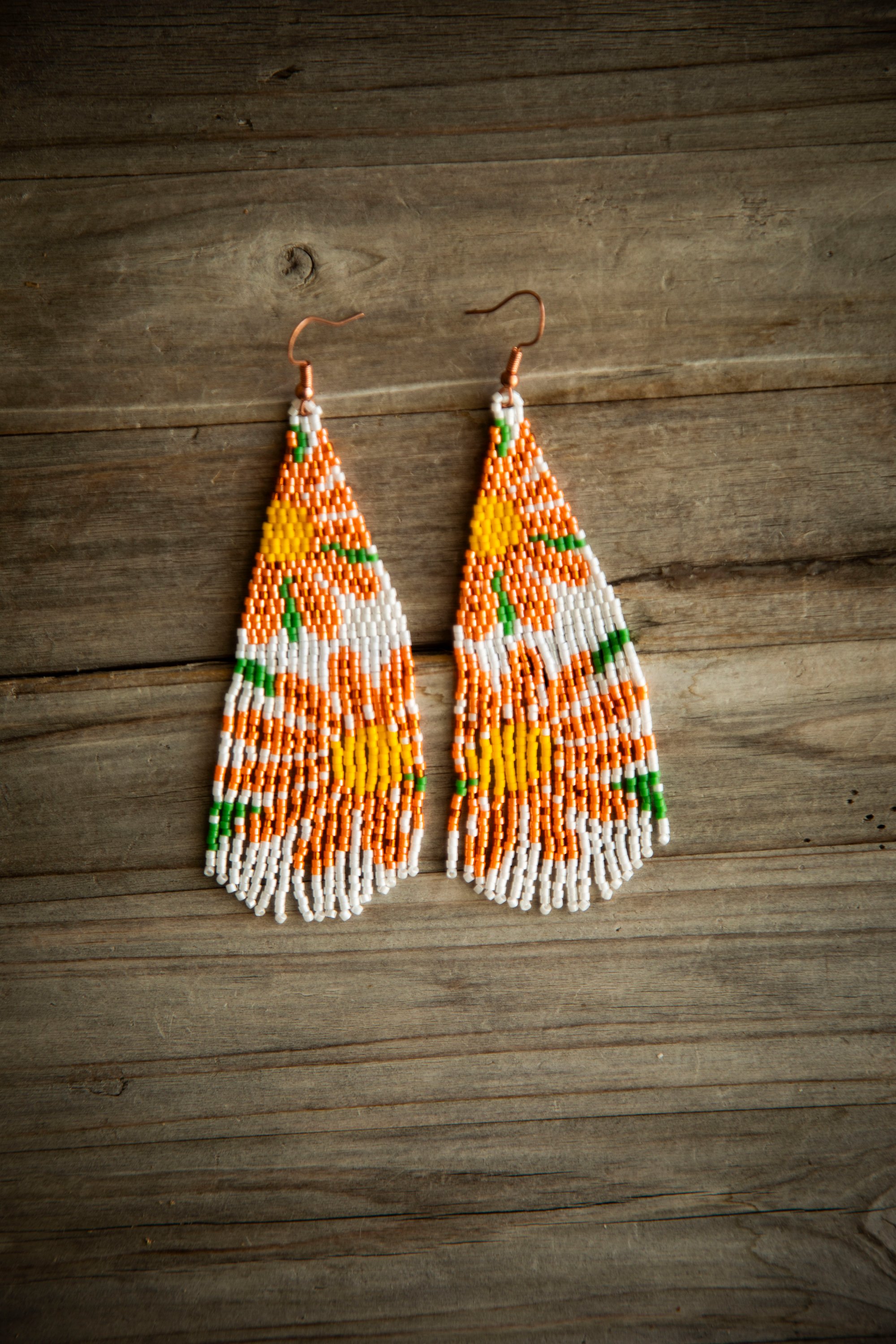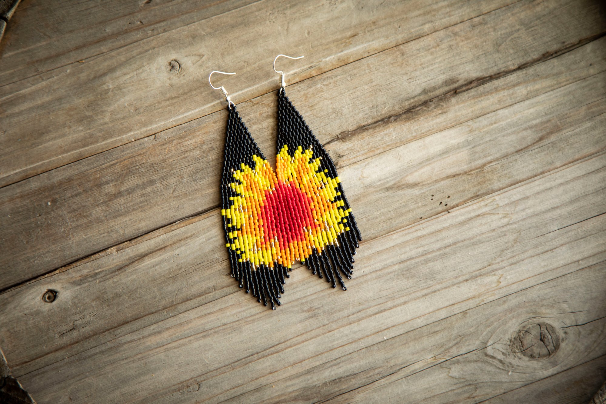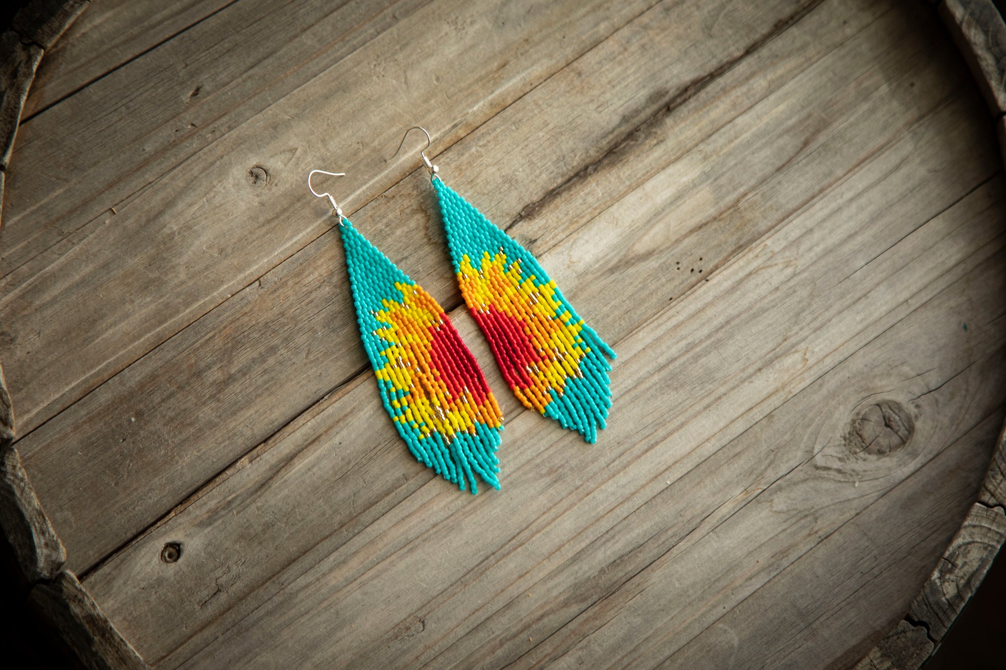 Stunning hand-beaded Huichol earrings made with the finest Delica Miyuki beads, which creates an elegant, lightweight, and unique style. These earrings are beautifully made by our team of Wikarika women from Nayarit. One of a kind. 100% Indigenous made.