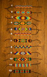 Hand-beaded ankle bracelets made of high-quality glass beads, also known as Chaquira. Done in Chiapas by Mayan communities. 6 inches long by 1 inch wide (15cm x 2.5cm). This can also be worn as an ankle bracelet as the strings are long. Please choose the bracelet by selecting the image number.