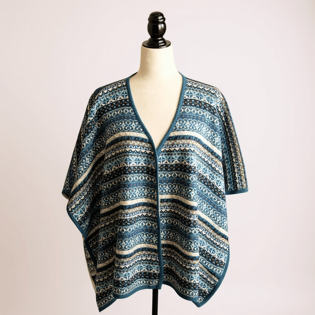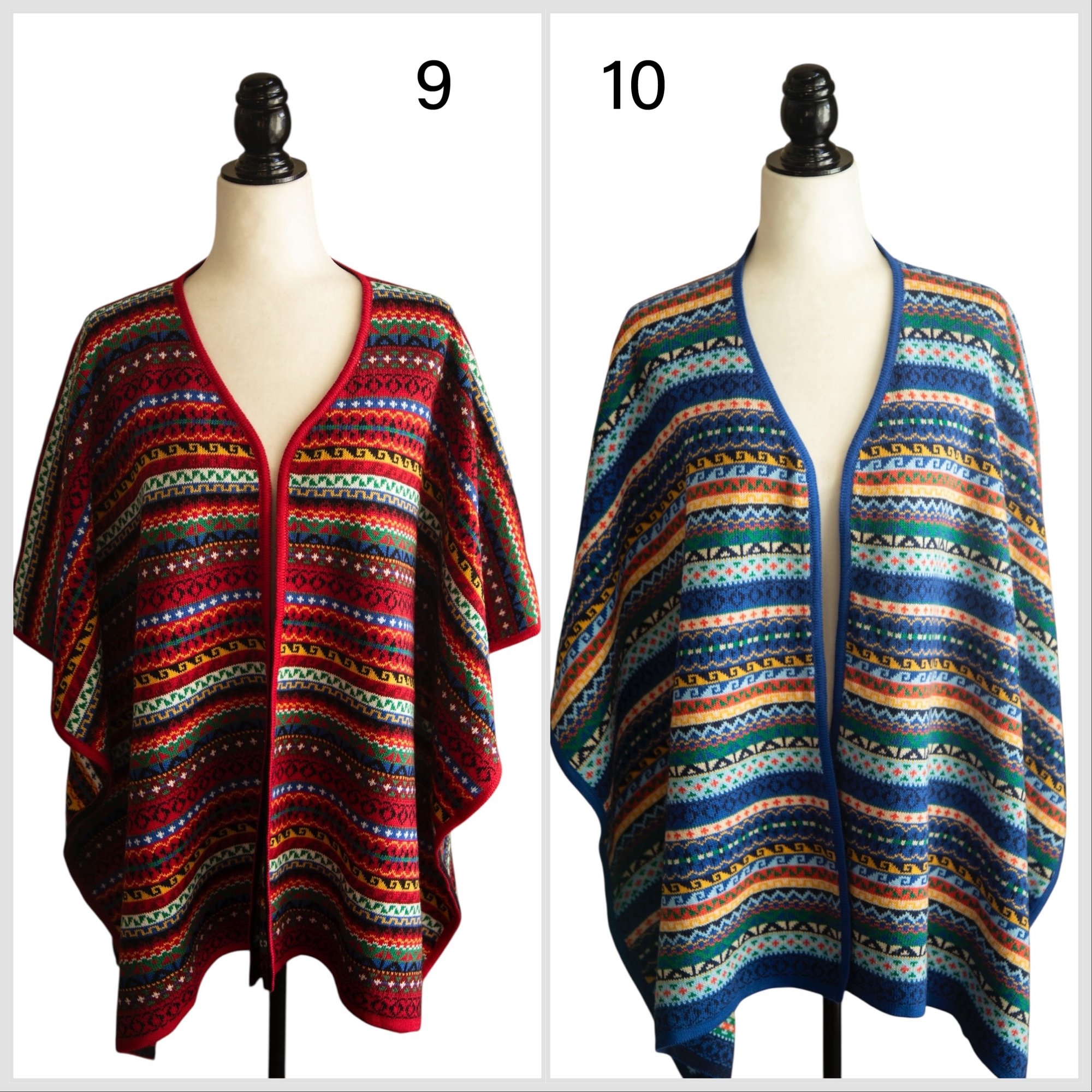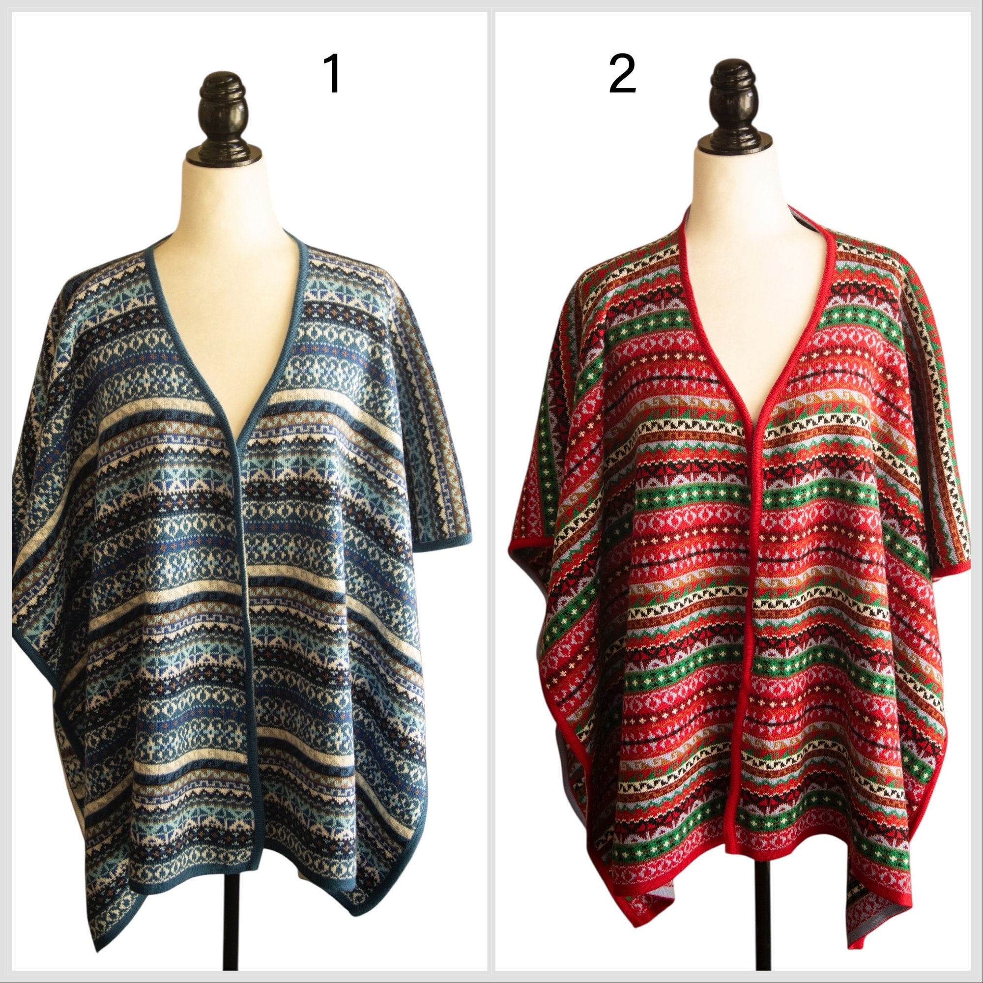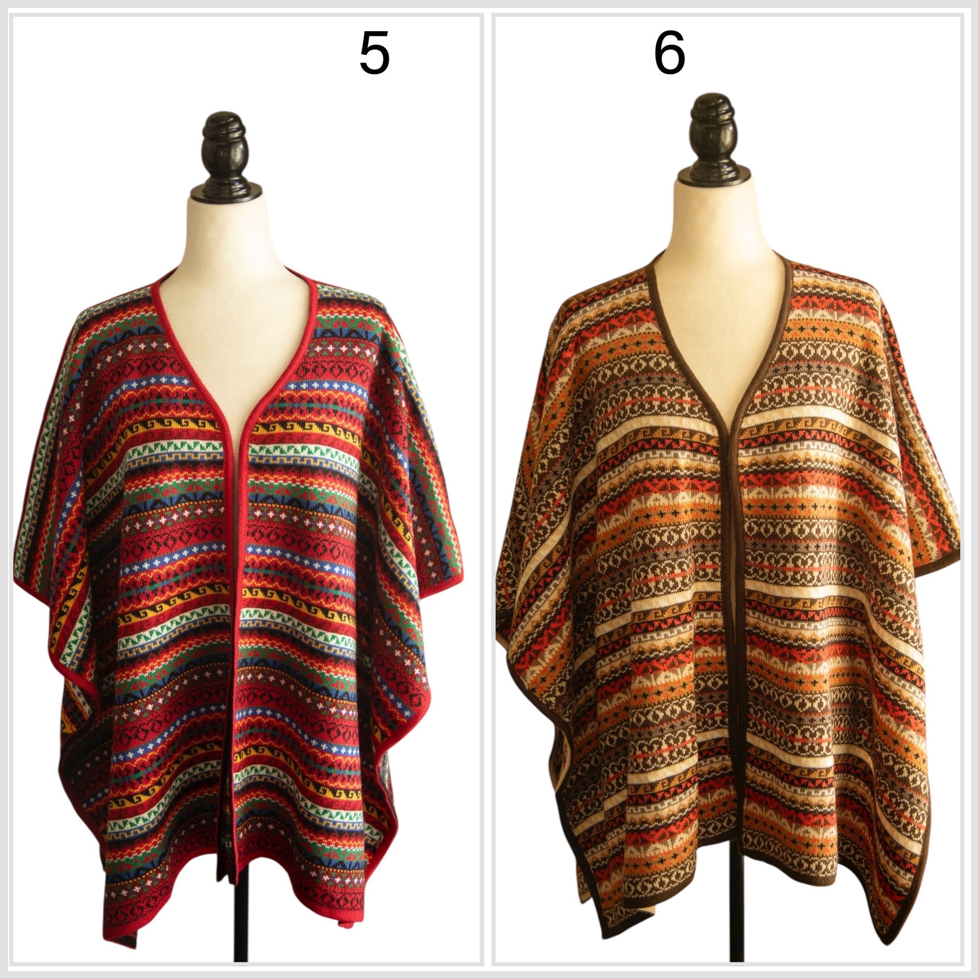 Stunning soft, lightweight Quechua poncho made in Peru by indigenous families. The designs represent the combinations of many elements found in nature and authentically created by Indigenous artists.