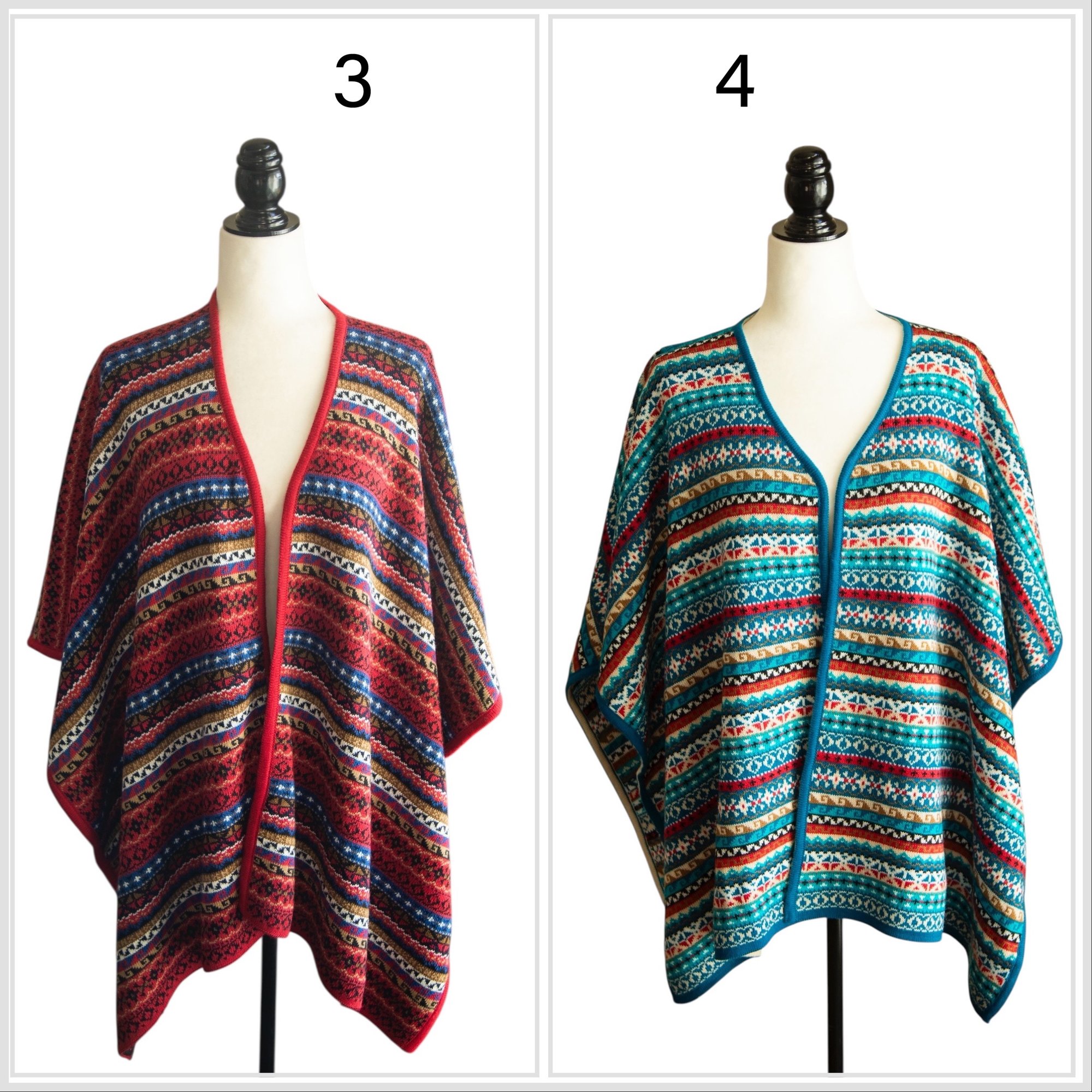 Made with genuine Baby alpaca blend fibers, cotton, and rayon. This is also known as capa style. These shawls have an opening on the neck side, so the shawls always stay still, and you don't have to worry about keeping adjusting them to stay on your shoulders.