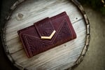 Stunning carved leather wallet, done with genuine cow leather. This is our nicest design made so far. Made of the highest cowhide, the interior is 100% made of leather, with a zipper, for coins, 4 interior compartments, and it fits up to 13 cards.