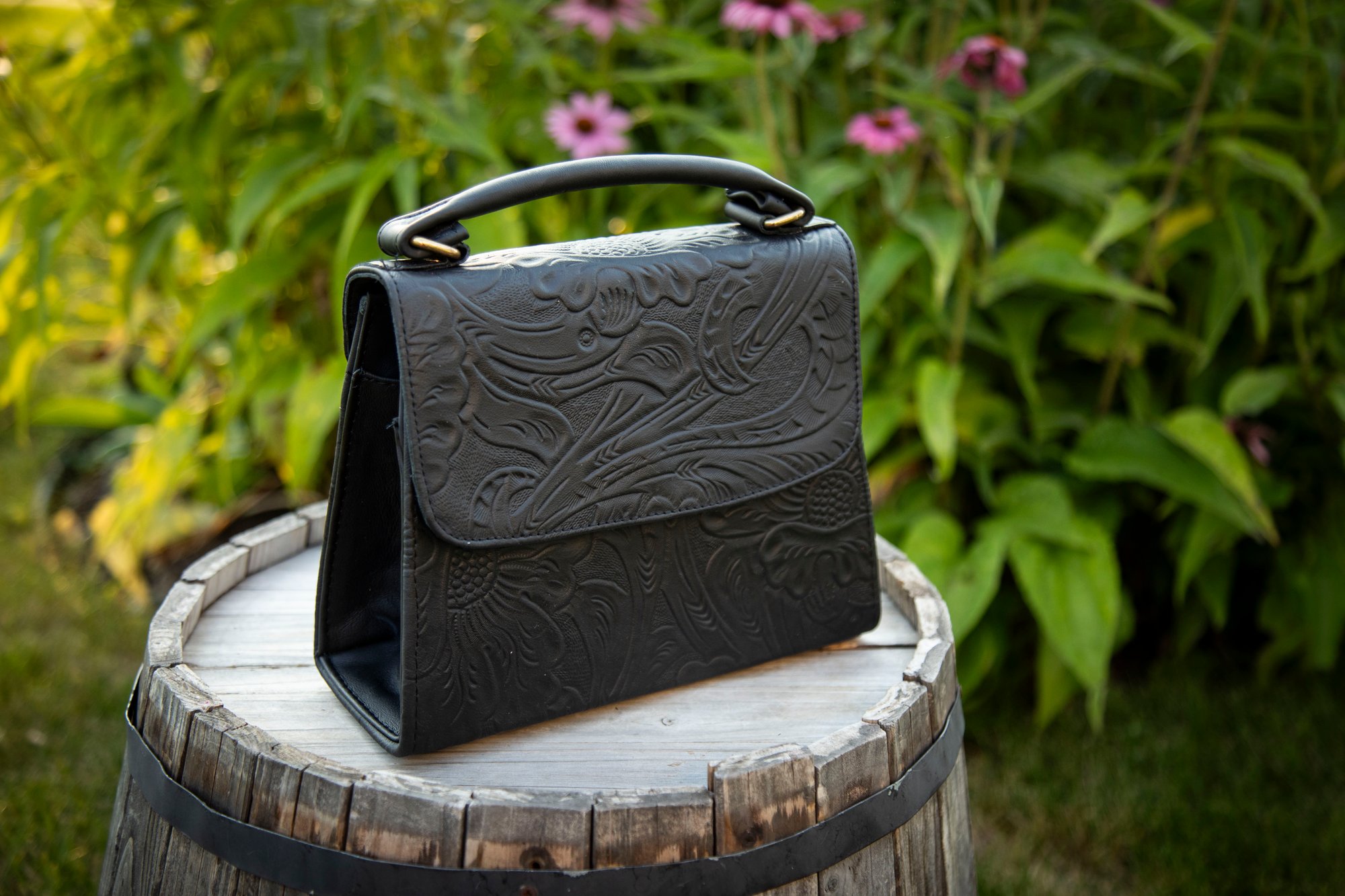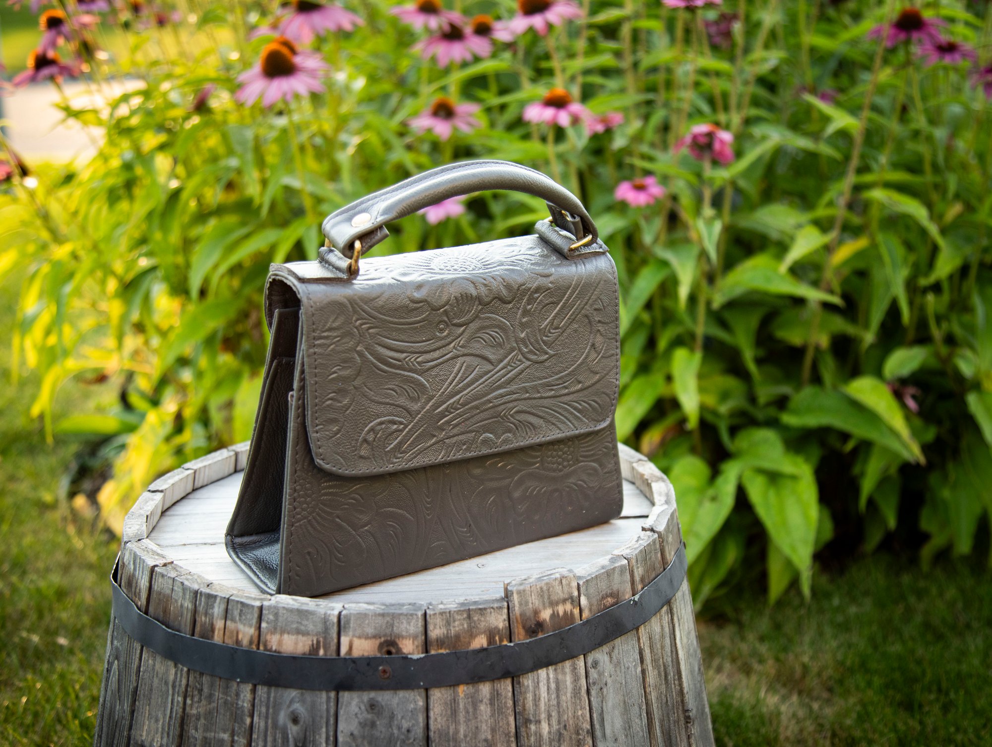 These handmade purses are individually done, sewn, and carved. This means that each design is one of a kind!