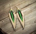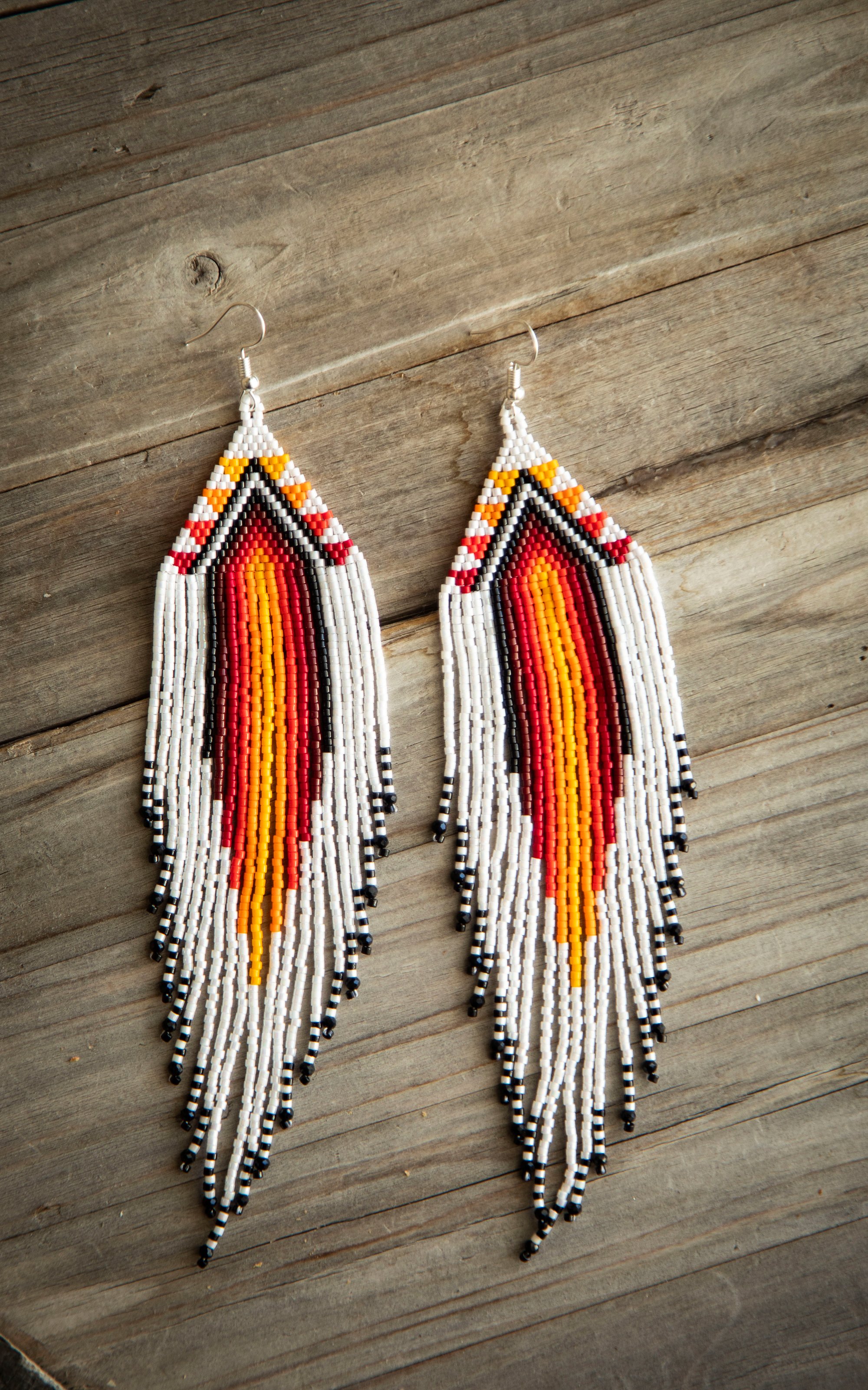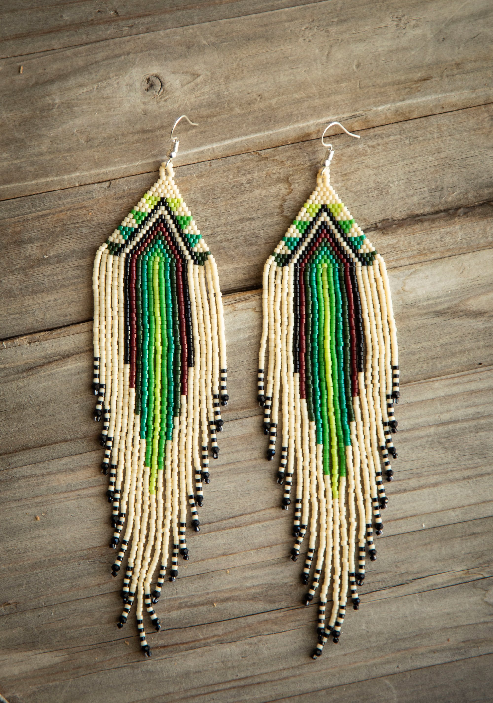 Stunning hand-beaded Huichol extra long earrings made with the finest Miyuki beads, create an elegant, lightweight, and unique style that everyone will notice and will give you compliments about. These earrings are beautifully made by our dedicated team of Wikarika women from Nayarit. One of a kind. 100% Indigenous made.