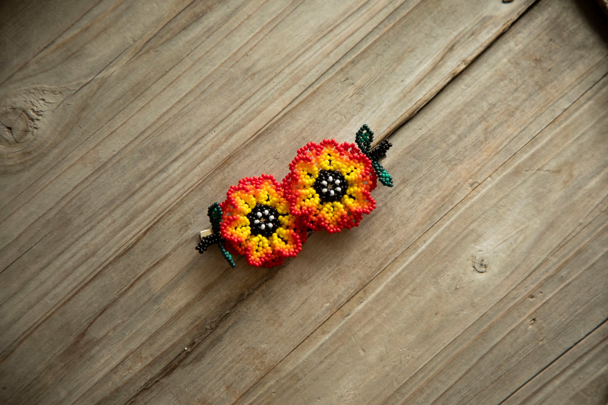 Stunning handmade hair clips done with high quality glass beads. Created by Mayan artists from Chiapas. Please note that this is a set of 2 pieces.