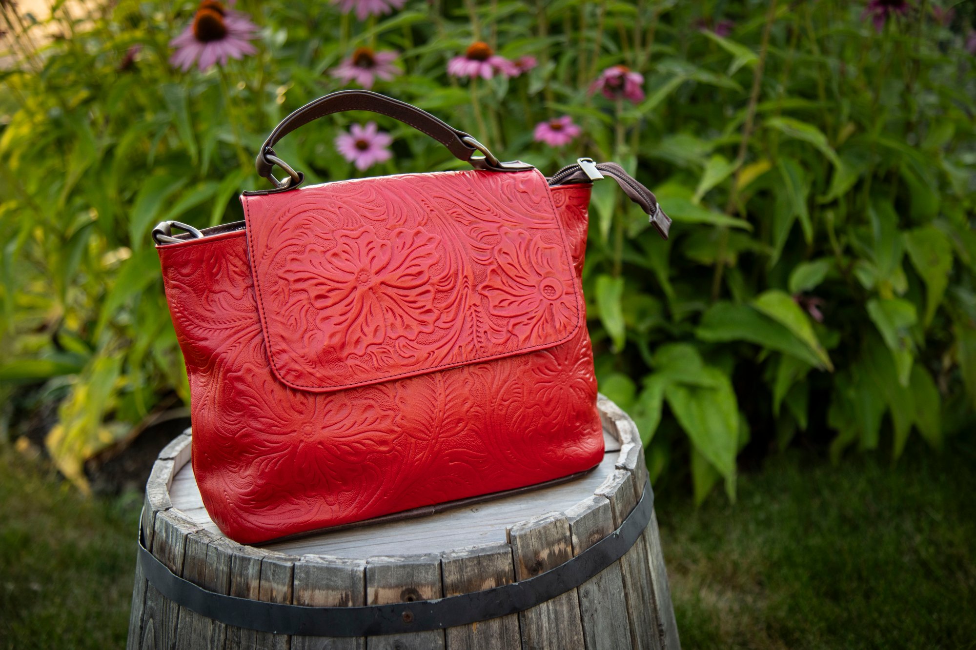 Beautiful handmade crossover bag created with genuine cow leather. It includes a zipper on the top to keep your items secure and a long, removable, and adjustable leather strap. Fully lined inside with one pocket with a zipper. One additional pocket with a zipper in the back for extra items. The