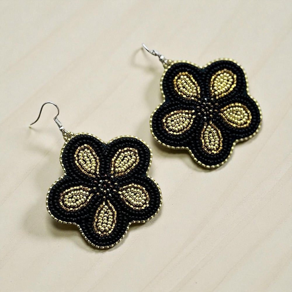 Each pair has been hand-beaded, and sewn by hand with lightweight vegan leather in the back.