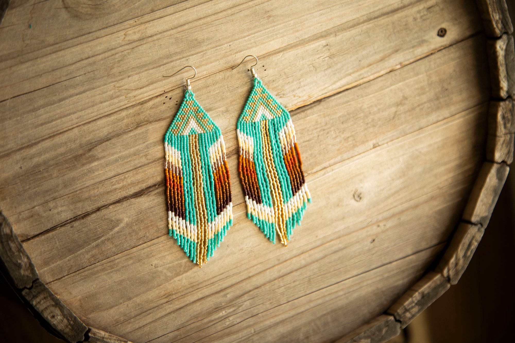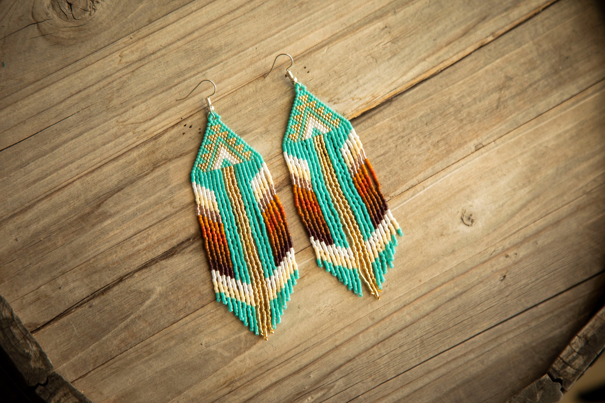 Stunning hand-beaded Wixarika earrings made with the finest Delica Miyuki beads, which creates an elegant, lightweight, and unique style. These earrings are beautifully made by Wikarika women from Nayarit. One of a kind. Authentically made by Indigenous people.