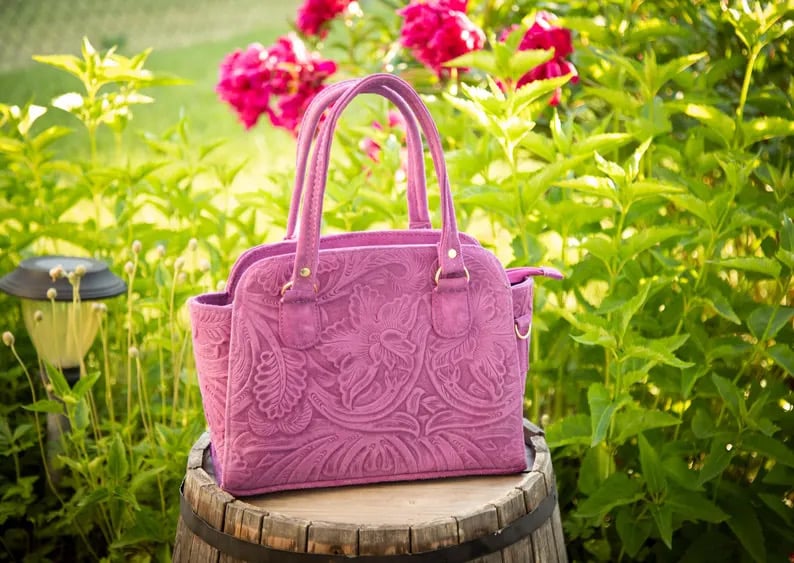 Stunning handmade crossover bag created with genuine cow leather. It includes a zipper on the top to keep your items secure at all times and a long removable and adjustable leather strap.