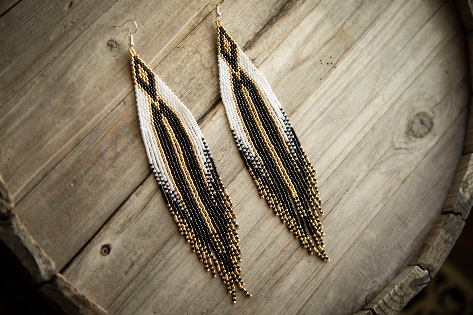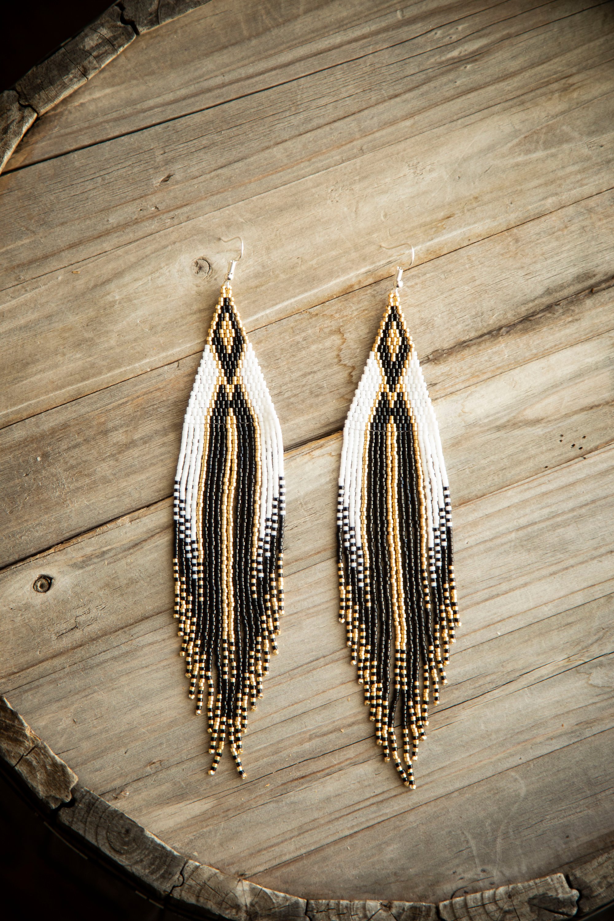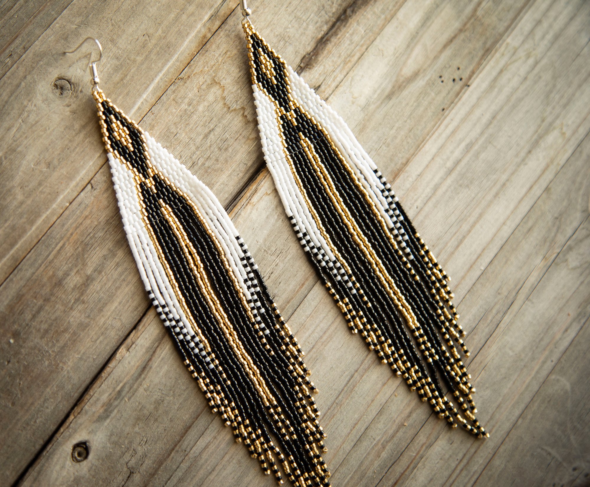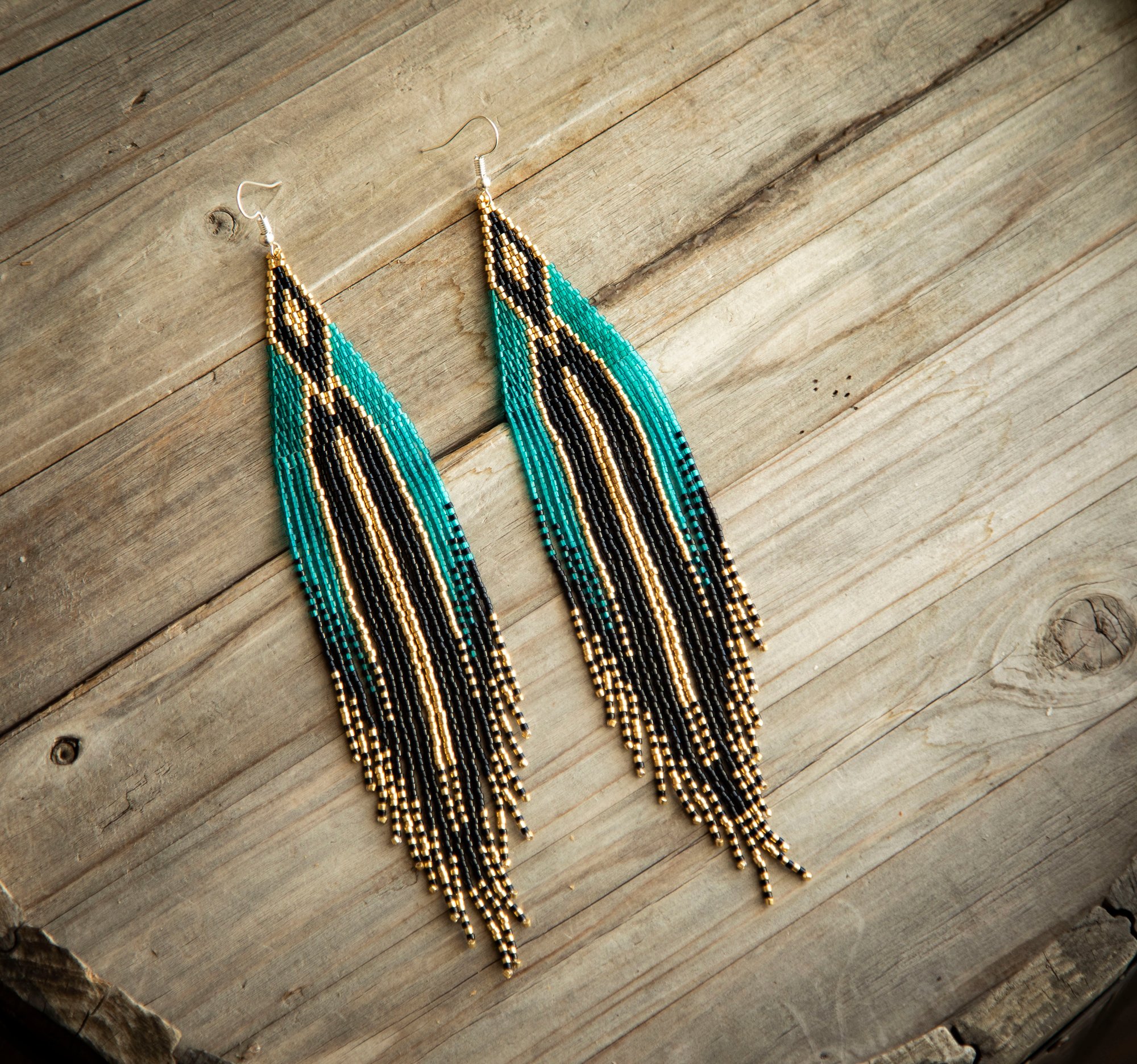 Genuine Indigenous product! EXTRA LONG- But lightweight. It includes 925 unmarked sterling silver solid hooks with backing.