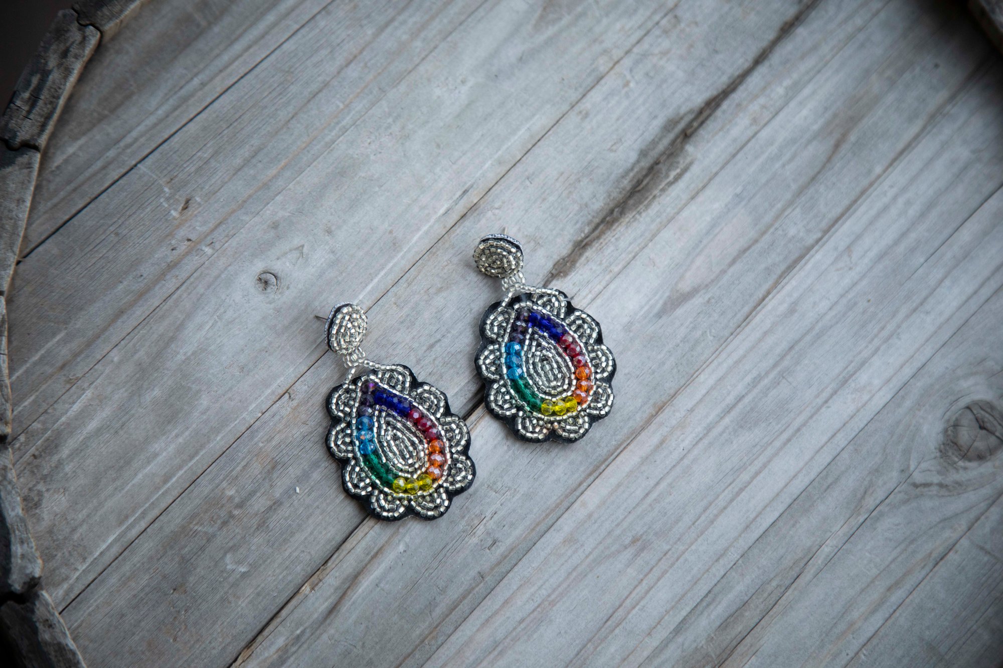 Each pair has been hand beaded, and sewn by hand with lightweight vegan leather in the back.