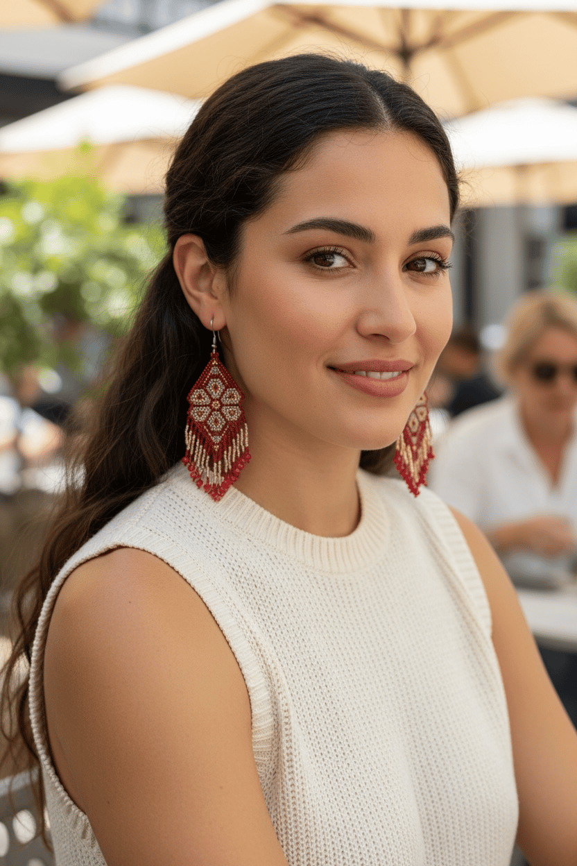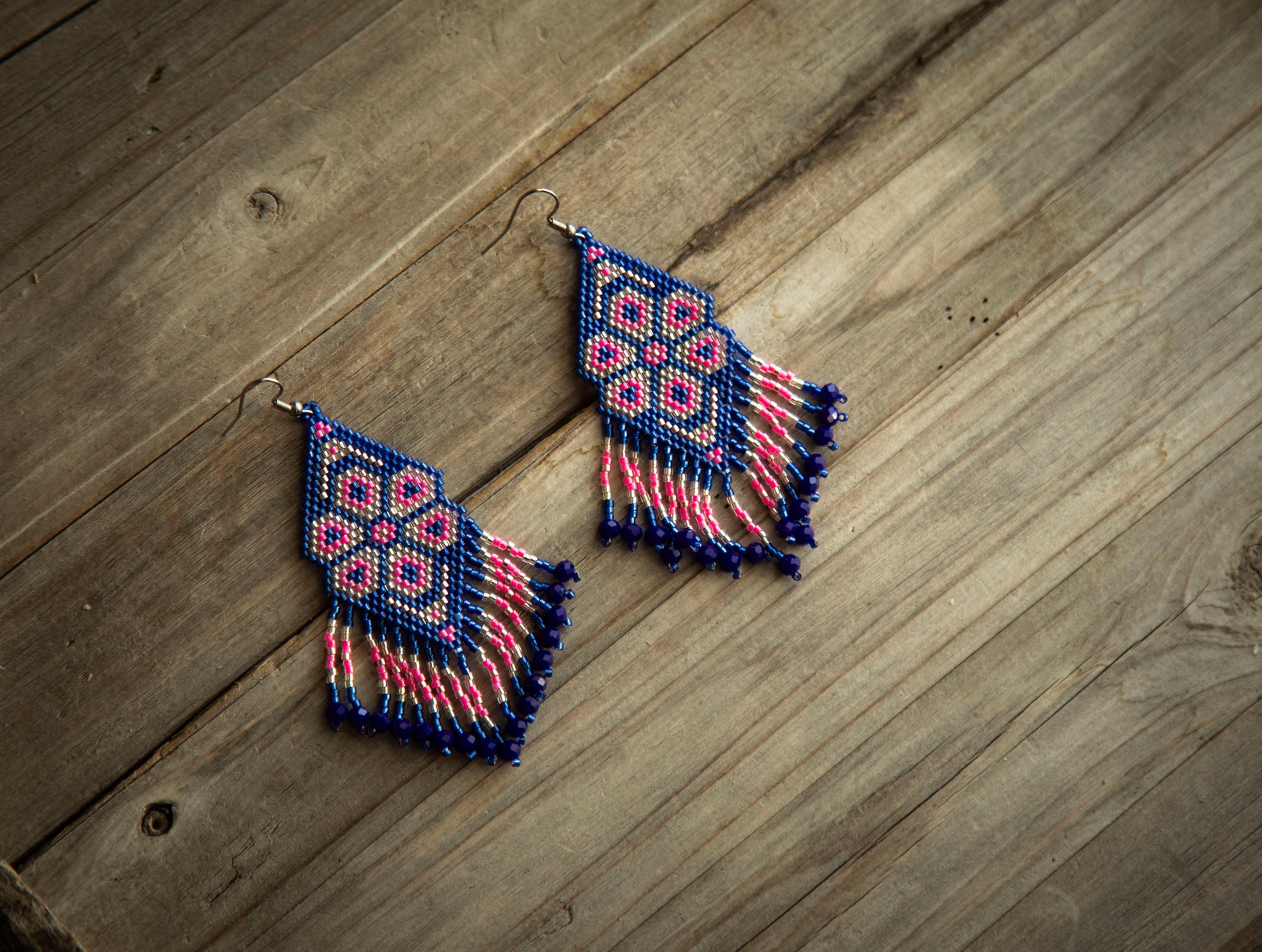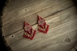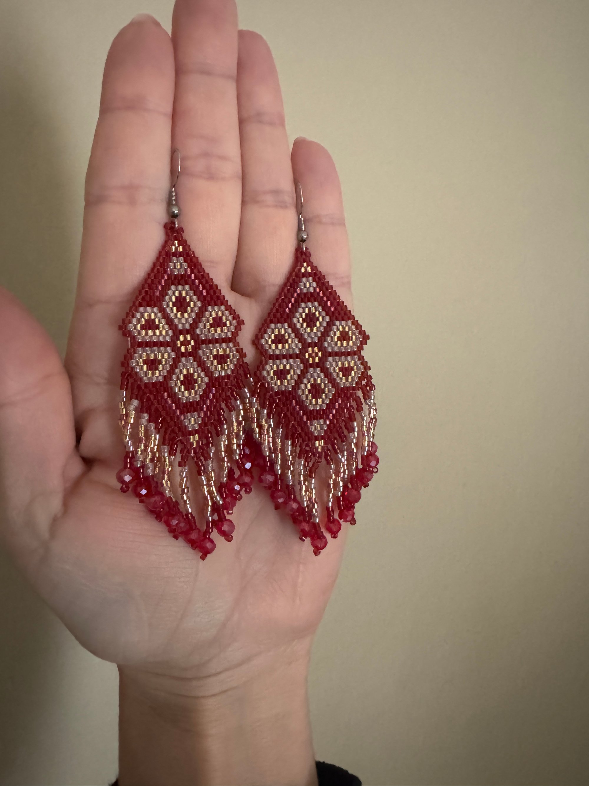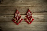 Stunning hand-beaded Huichol earrings made with the finest Japanesde Delica Miyuki beads, which creates an elegant, lightweight, and unique style. These earrings are beautifully made by our team of Wikarika women from Nayarit. One of a kind. 100% Indigenous made.