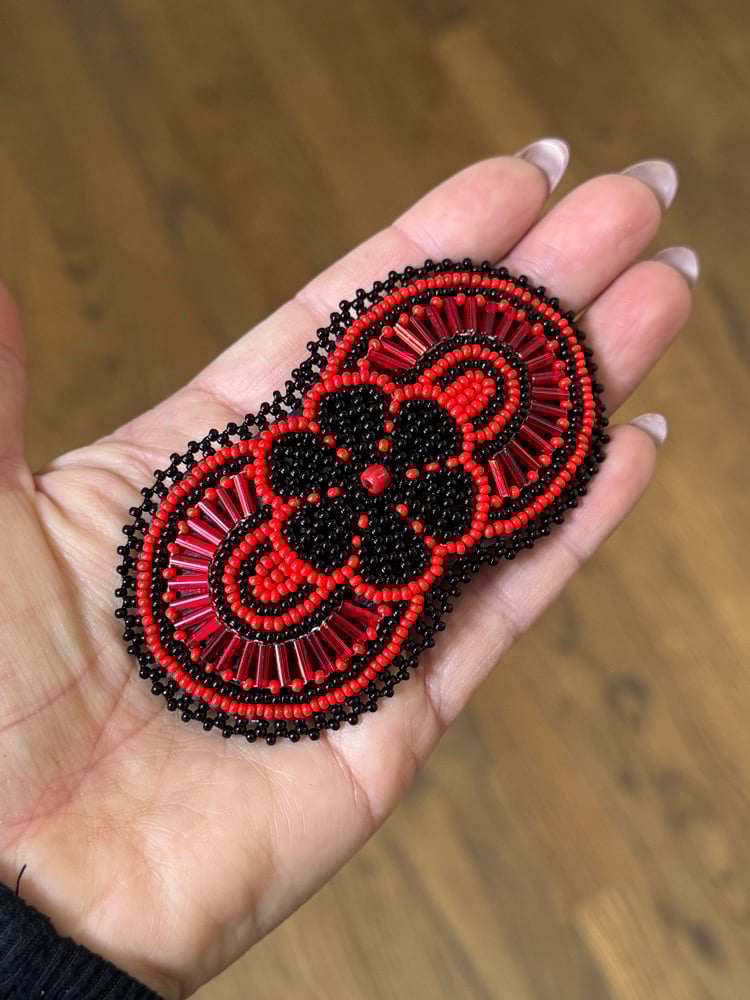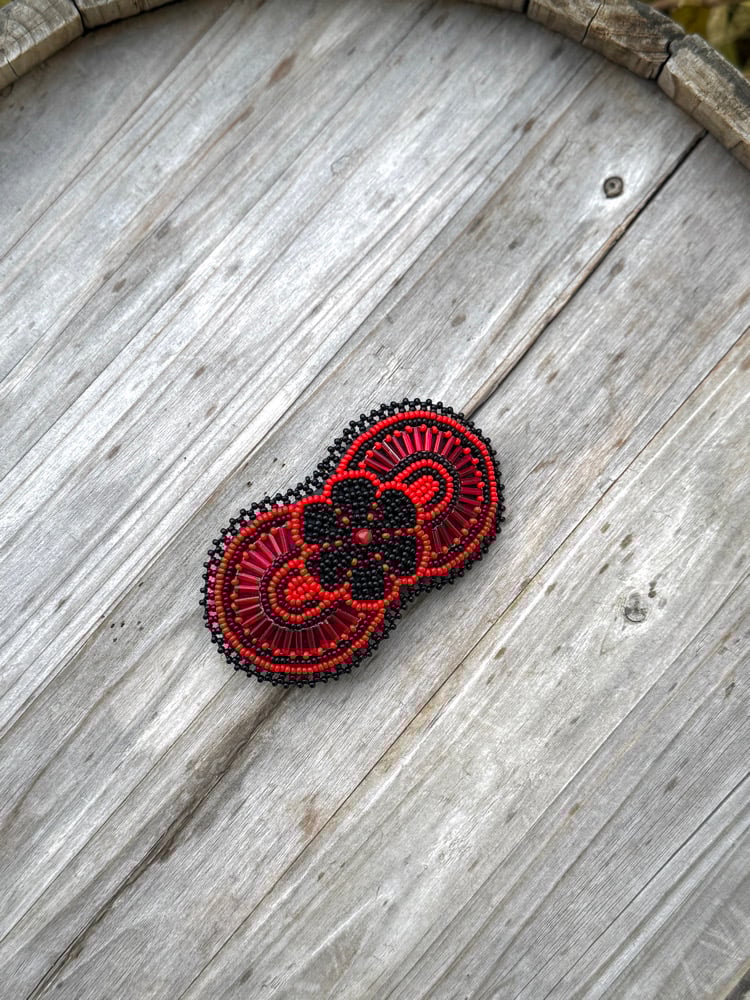 Stunning beaded barrette (hair clip) created by Wixarika artist Lucy. All are made with high-quality Preciosa beads. Each piece was individually created and no design is alike. Please note that the back of each piece has a piece of genuine leather and it is hand-sewn. A true piece of art.