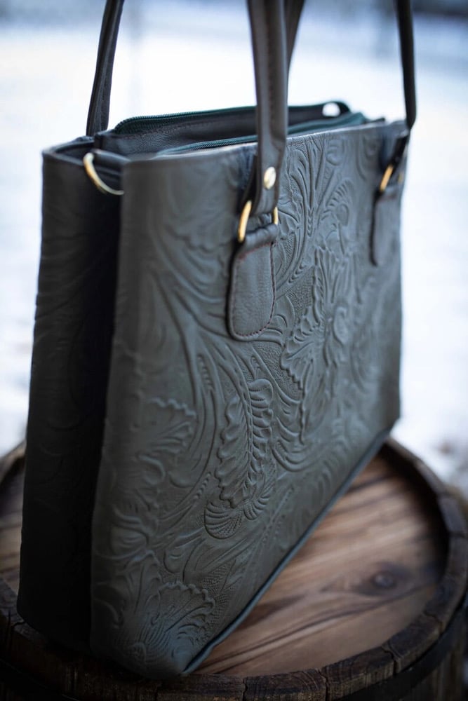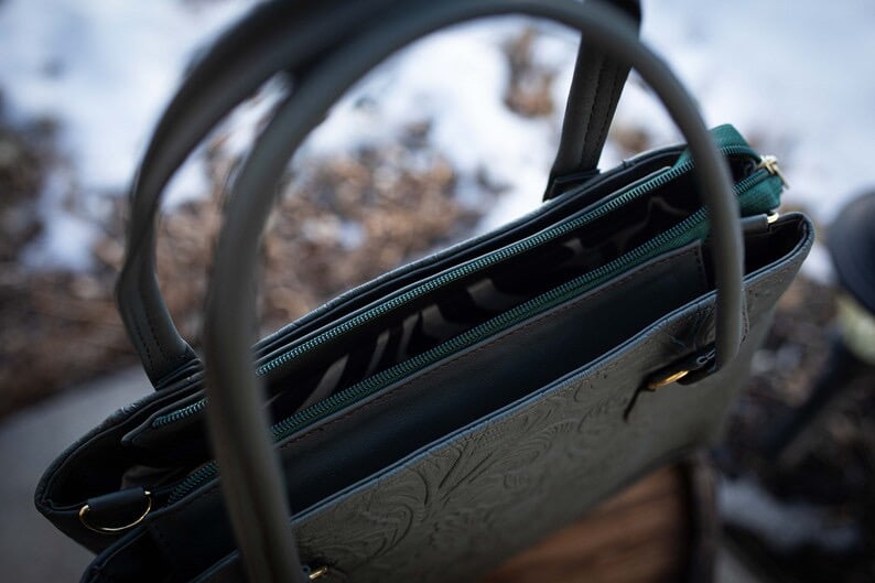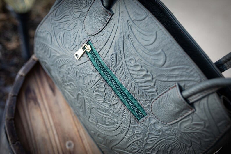 Beautiful leather bag made of genuine cow leather. 100% handmade work done by indigenous families from central Mexico. Fully lined inside with one inside pocket and a zipper on the top to keep your items secure. It includes a long, adjustable, and removable strap to wear this bag as a crossover body. Double compartments inside to add more organization.