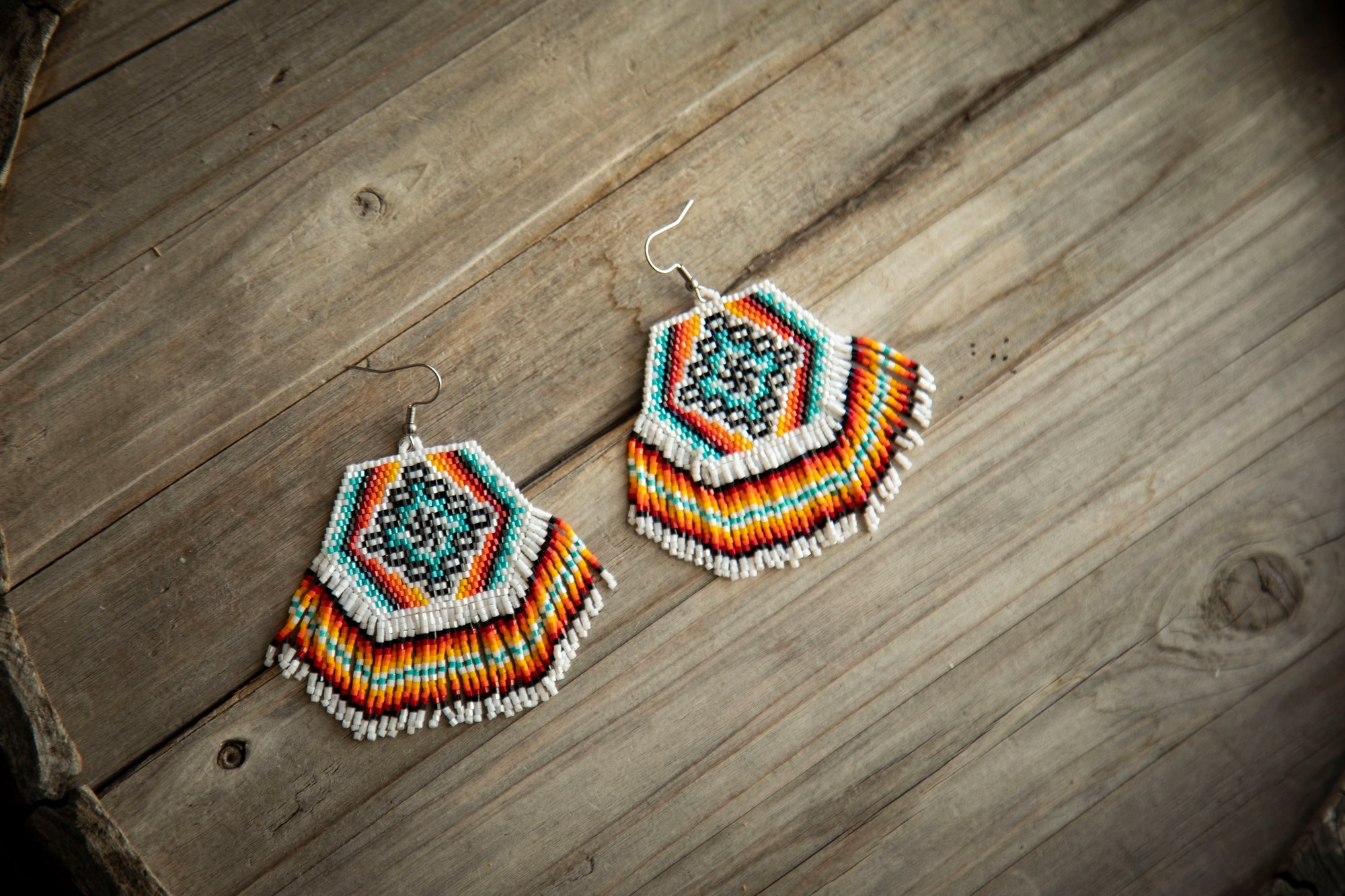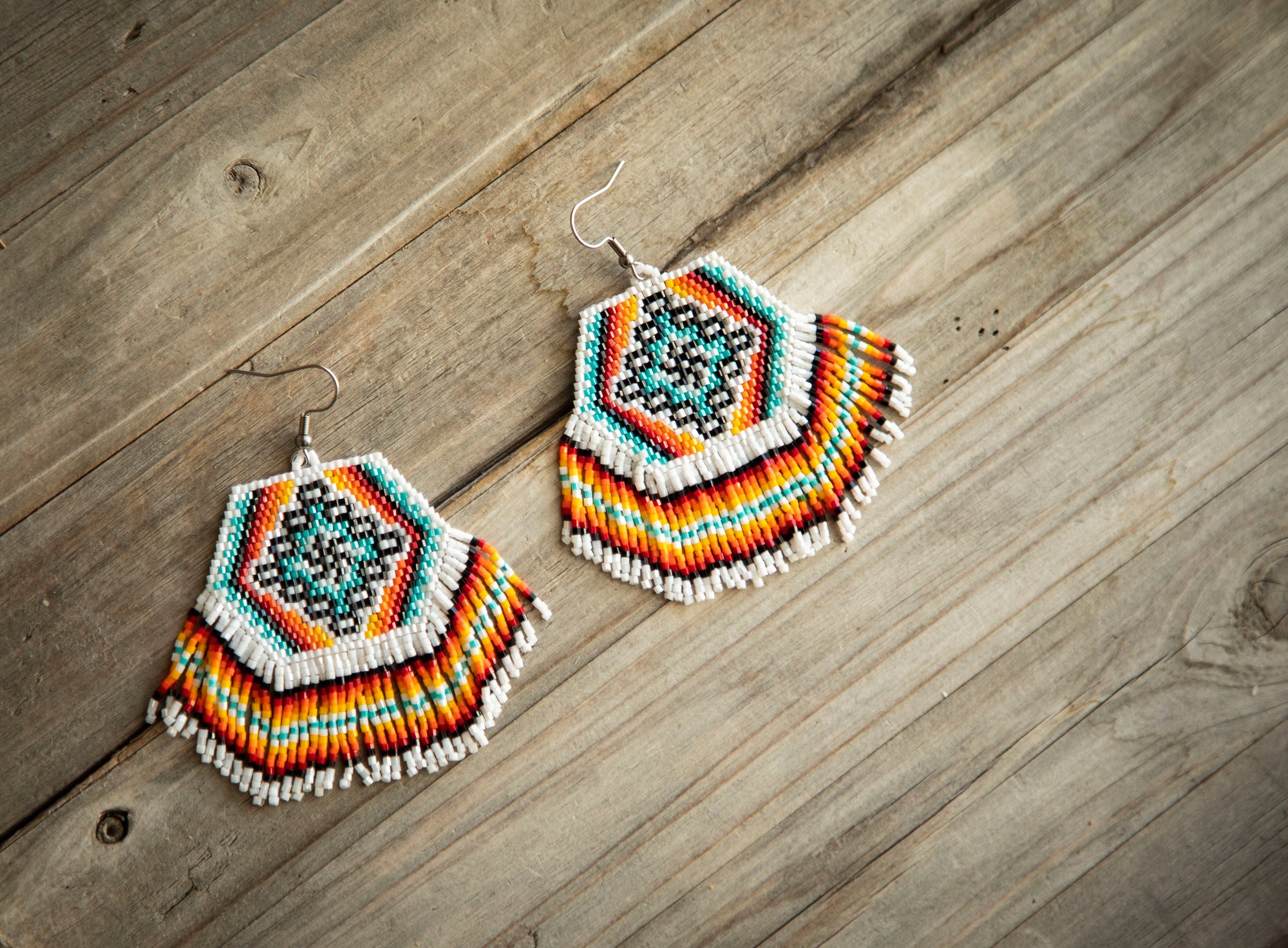 Stunning hand-beaded Wixarika earrings made with the finest Delica Miyuki beads. These are super lightweight! These earrings are beautifully made by our team of Wikarika women from Jalisco. One of a kind. Authentically made by Indigenous artists .