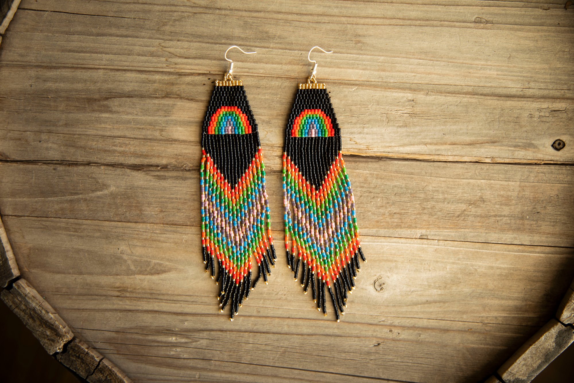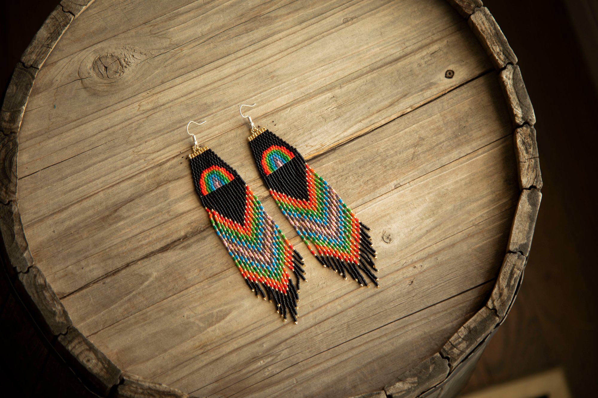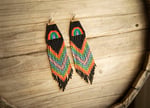 Stunning hand-beaded Huichol earrings made with the finest Delica Miyuki beads, which creates an elegant, lightweight, and unique style. These earrings are beautifully made by Wikarika women from Nayarit. One of a kind. Authentically made by Indigenous people.