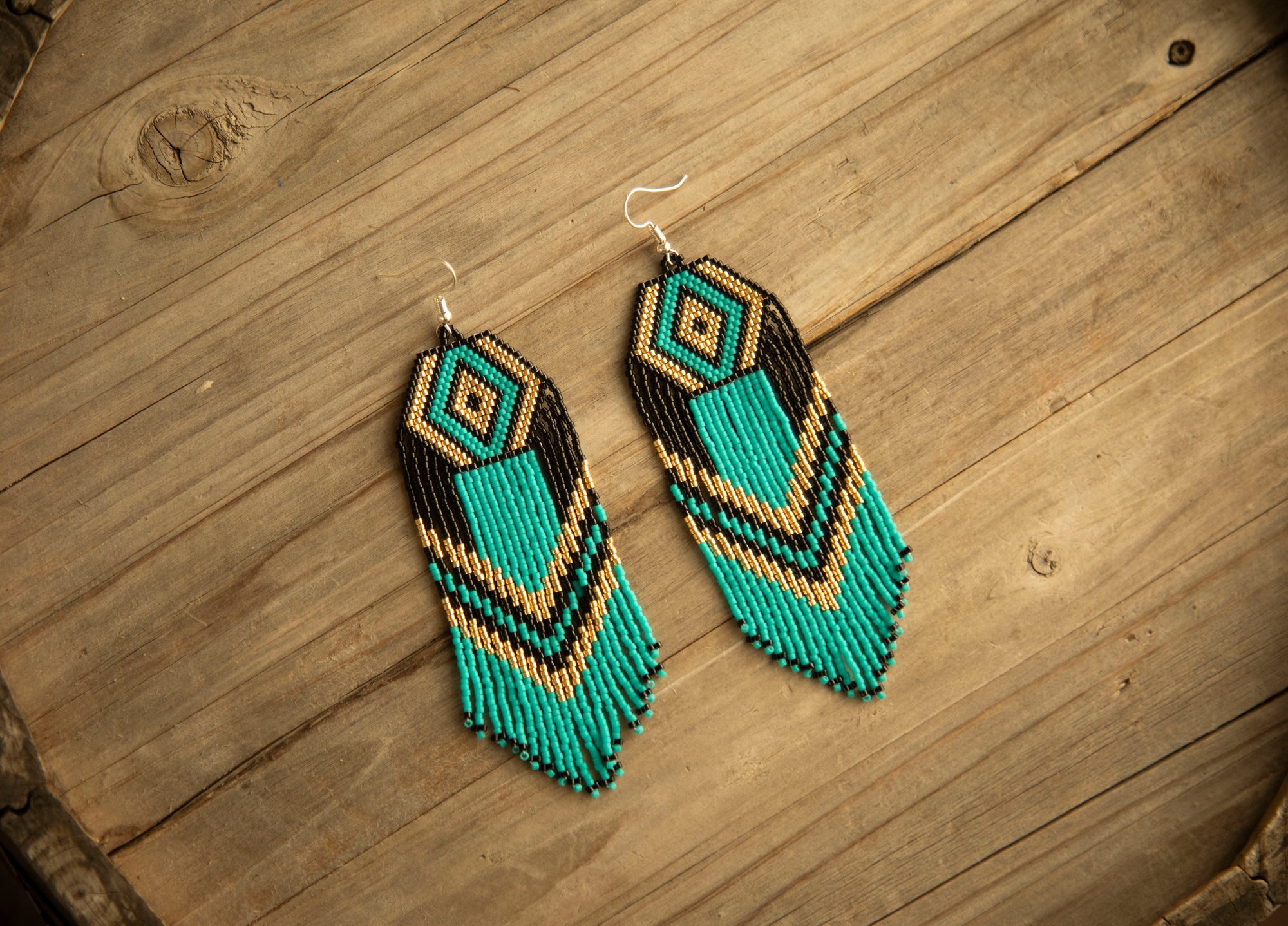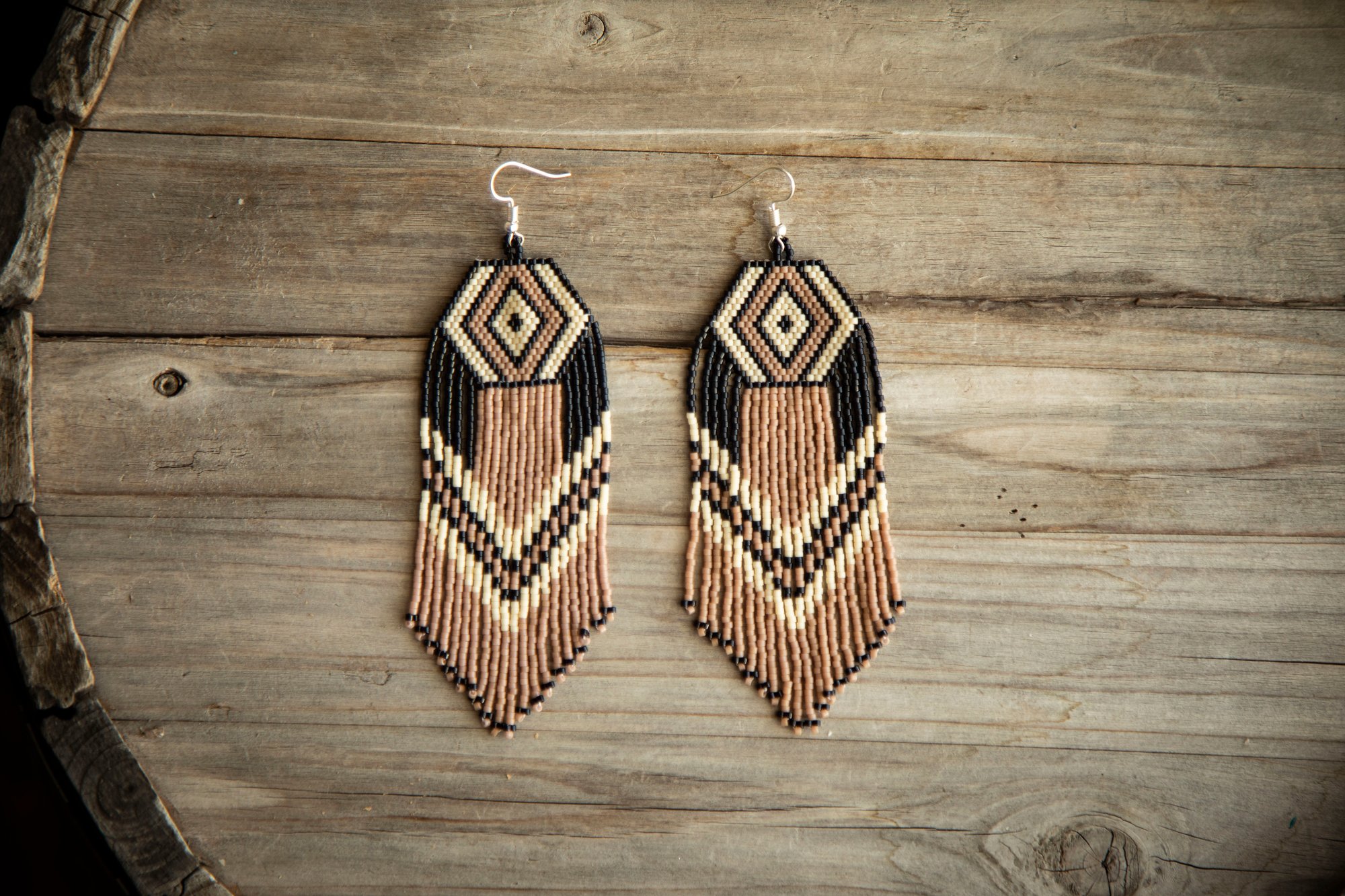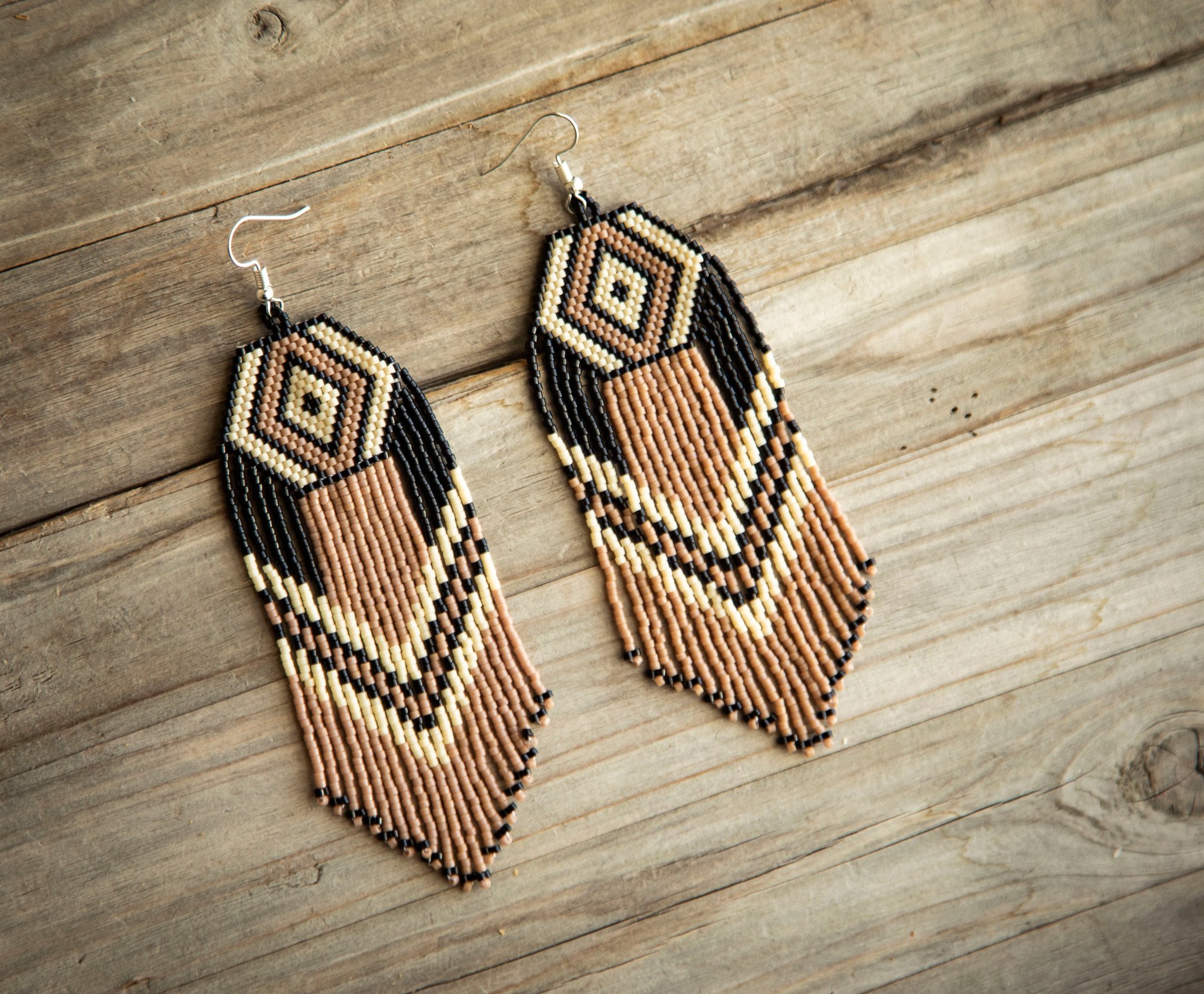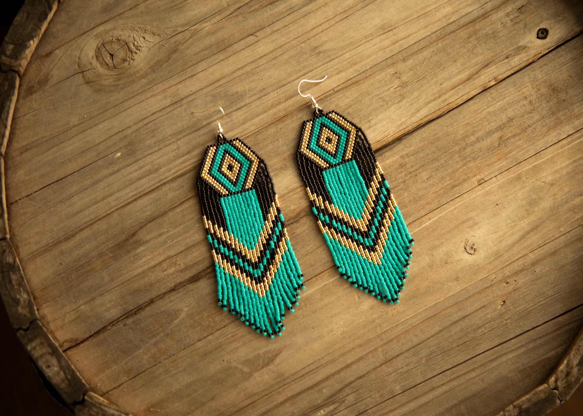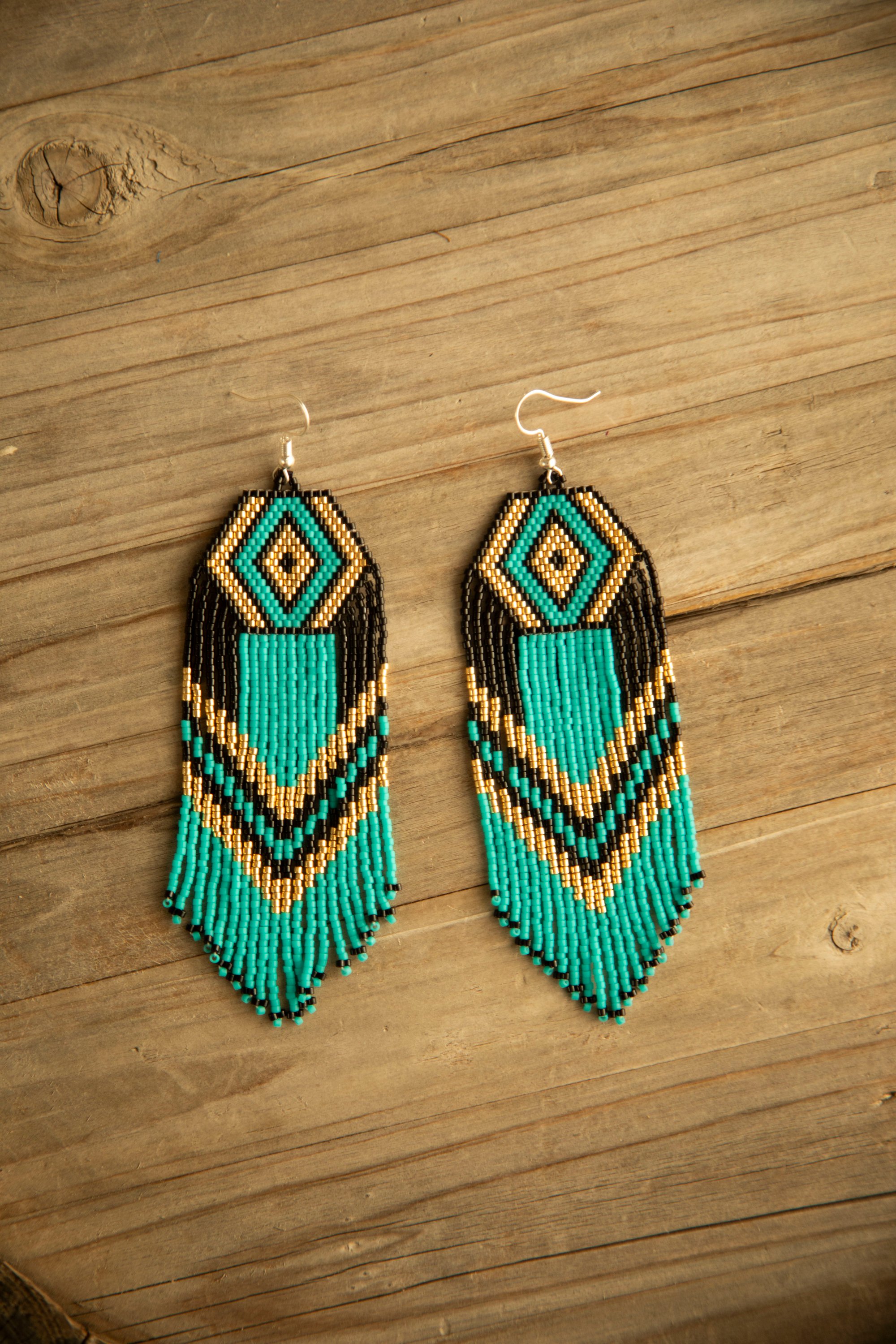 Stunning hand-beaded Huichol earrings made with the finest Miyuki/ Delica beads, which create an elegant, lightweight, and unique style that everyone will notice and will give you compliments about. These earrings are beautifully made by Wikarika women from Nayarit. One of a kind. 100% Indigenous made.