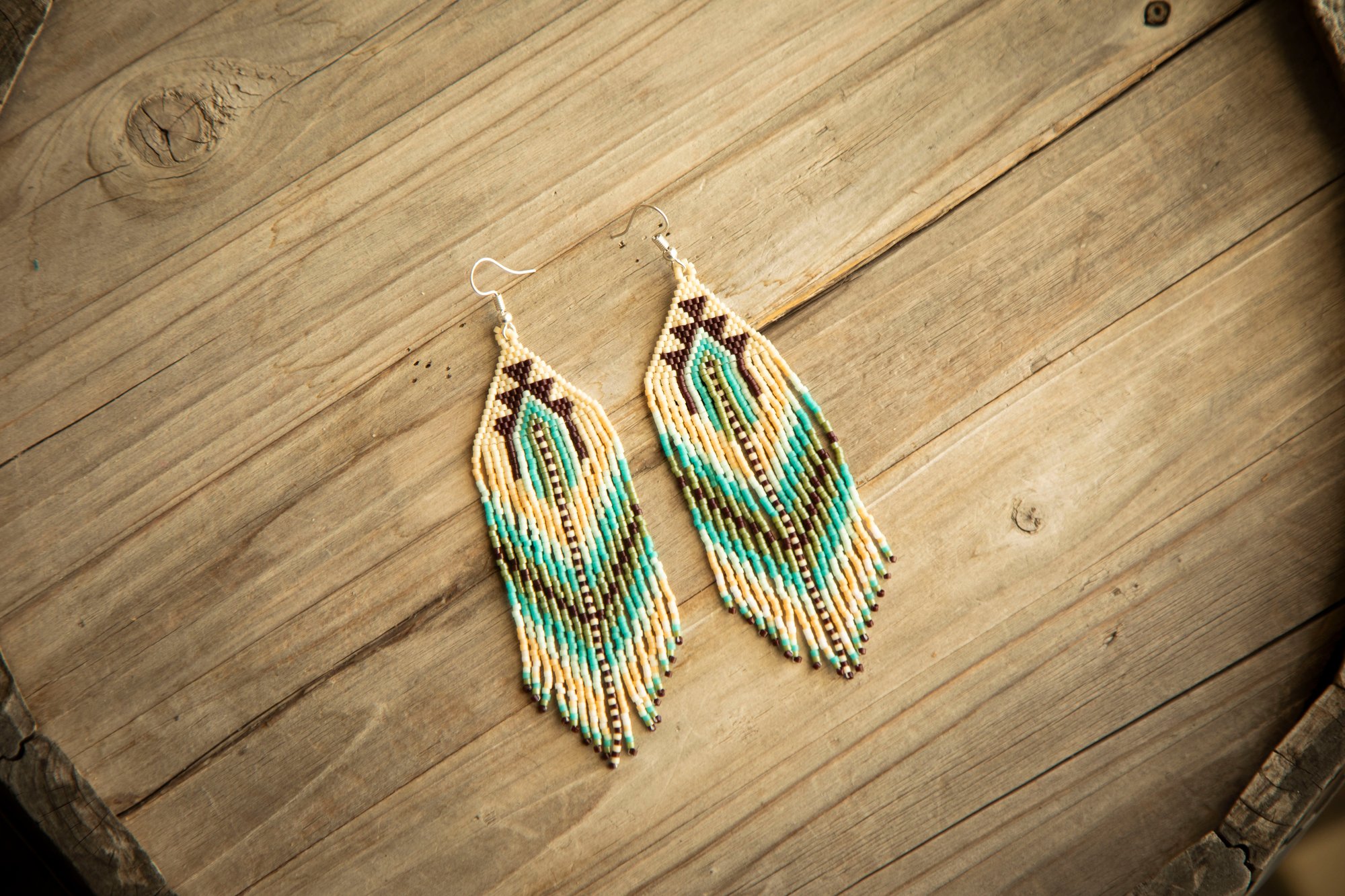 Stunning hand-beaded Huichol earrings made with the finest Miyuki/ Delica beads, which create an elegant, lightweight, and unique style that everyone will notice and will give you compliments about. These earrings are beautifully made by Wikarika women from Nayarit. One of a kind. 100% Indigenous made.