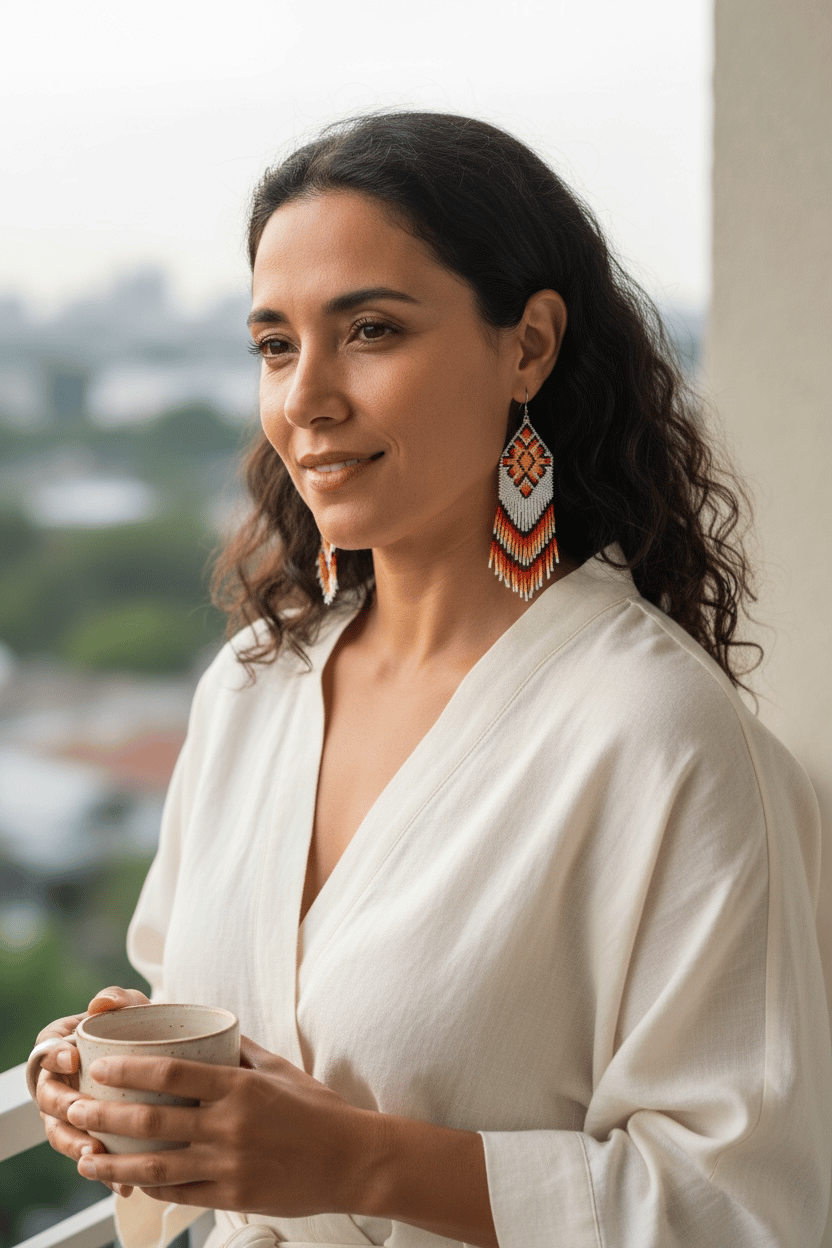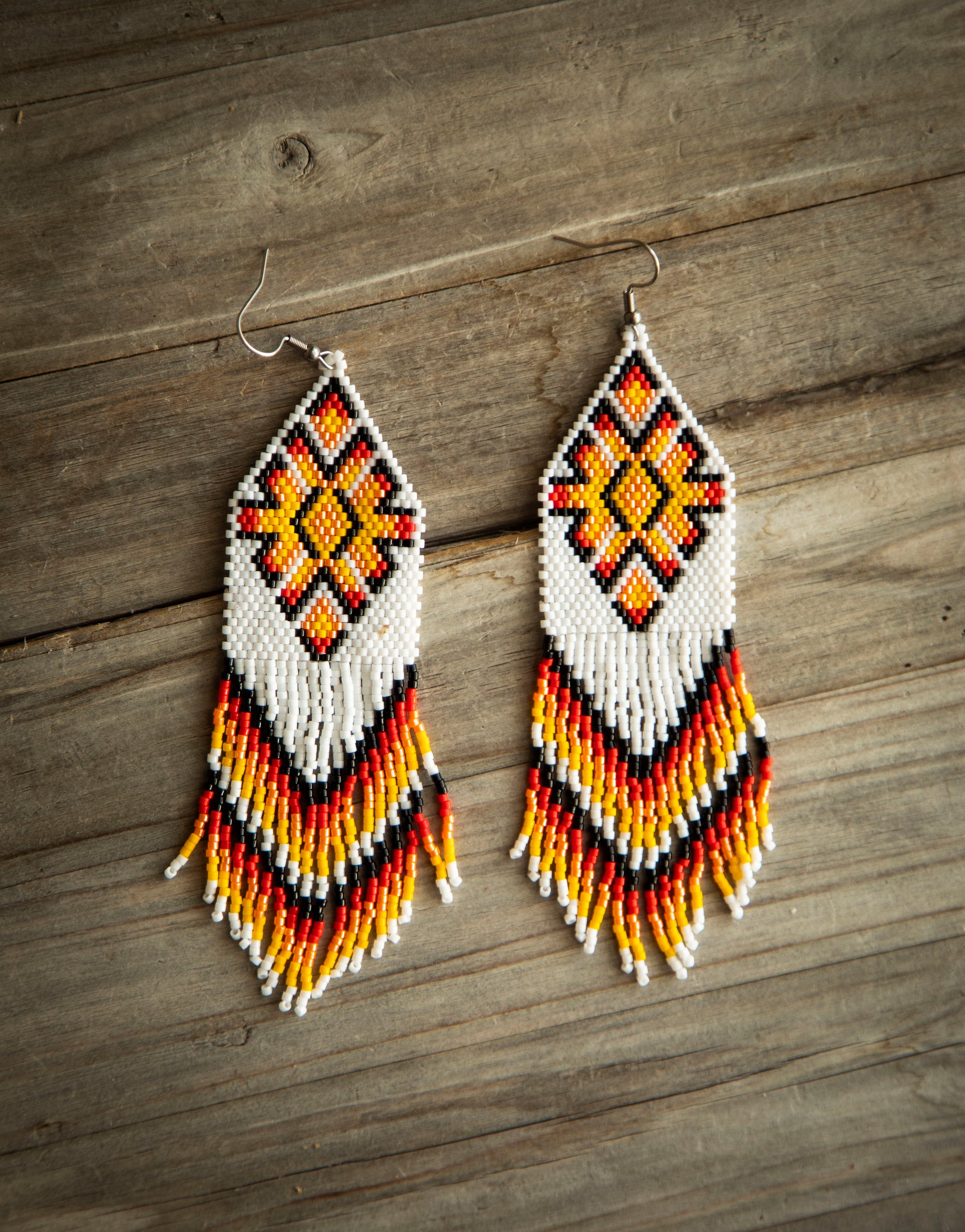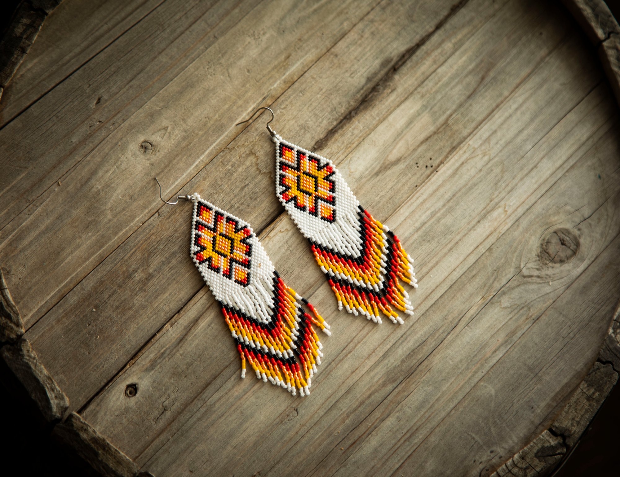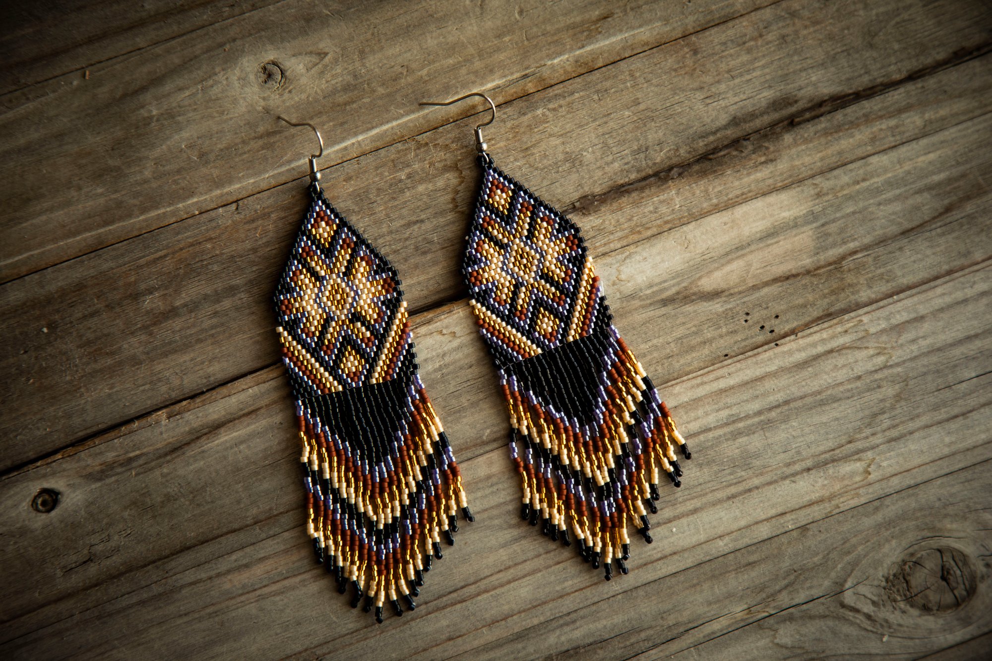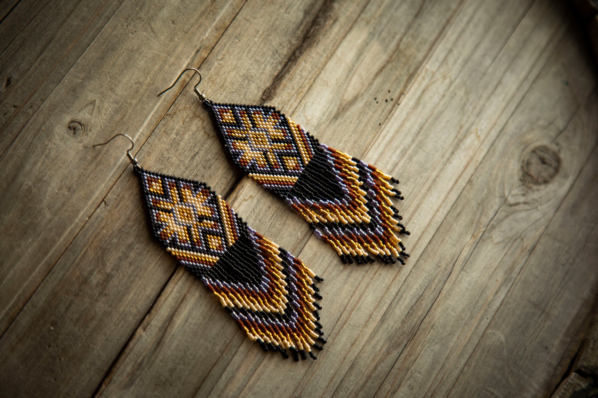 100% authentic Indigenous made product, made with the finest Delica Miyuki beads. Beautiful Huichol beaded earrings created by our team of Wixarika artists. All done with high-quality glass beads. Very lightweight.