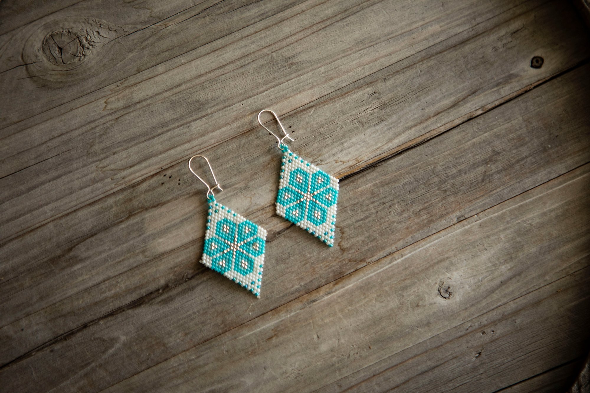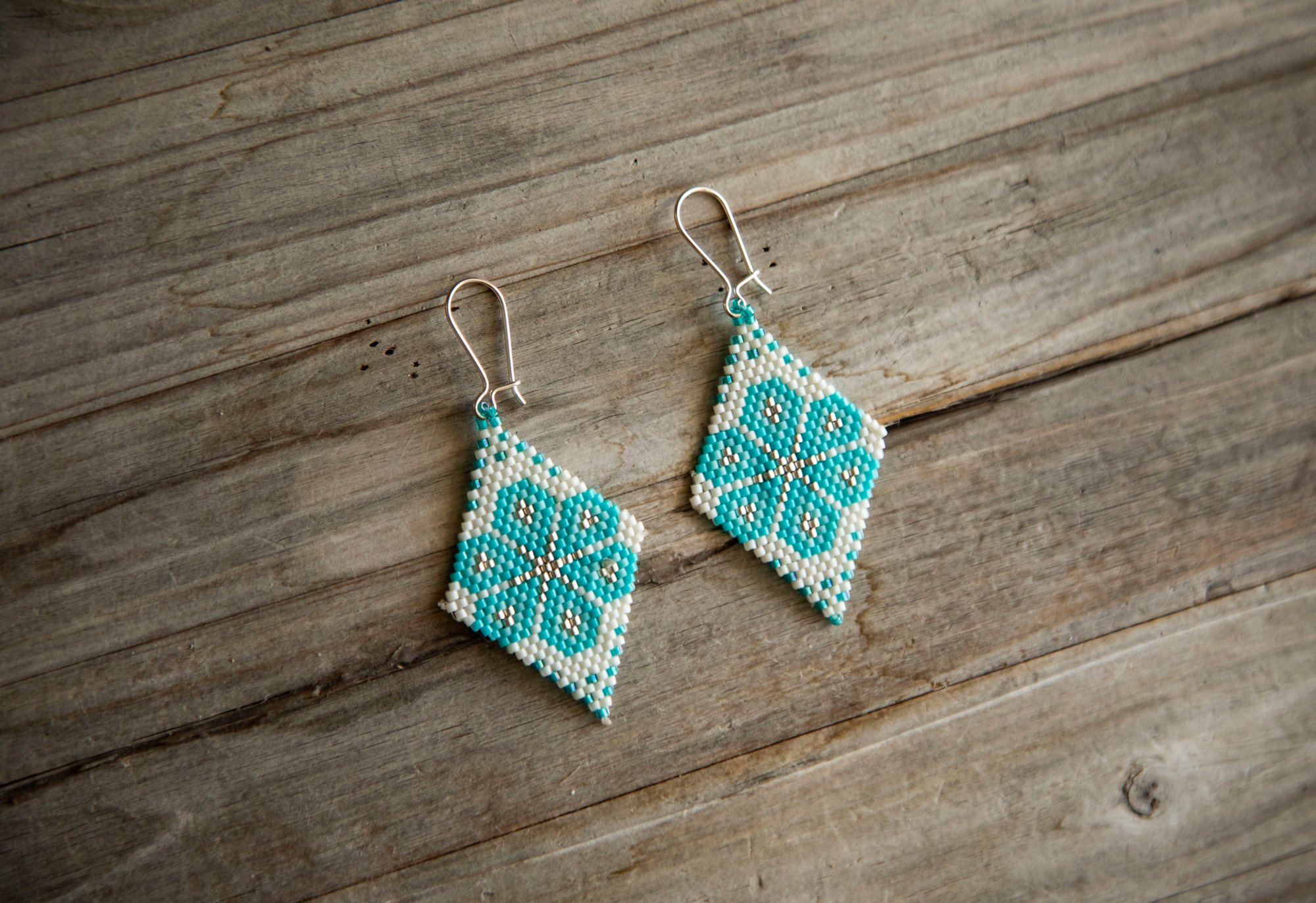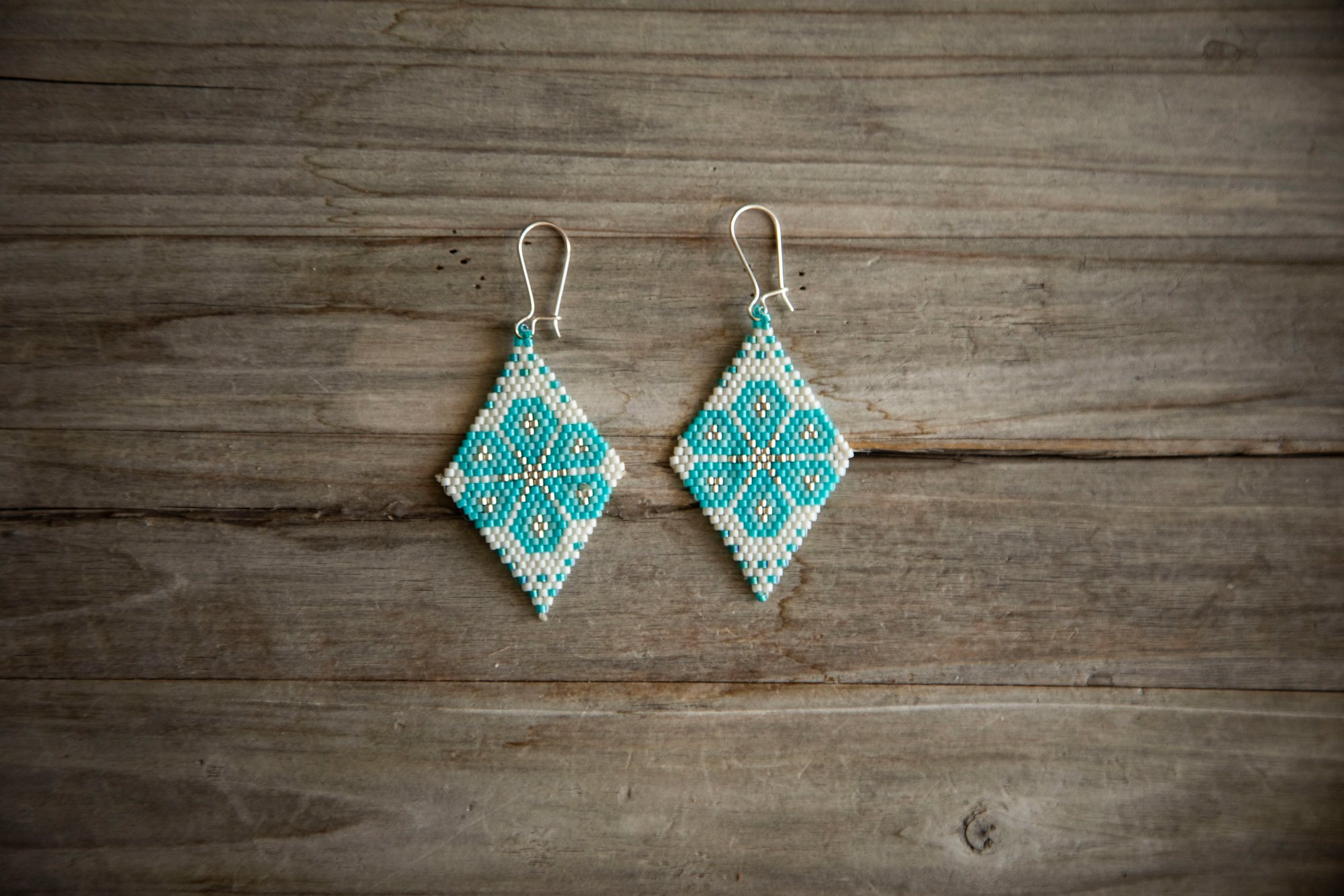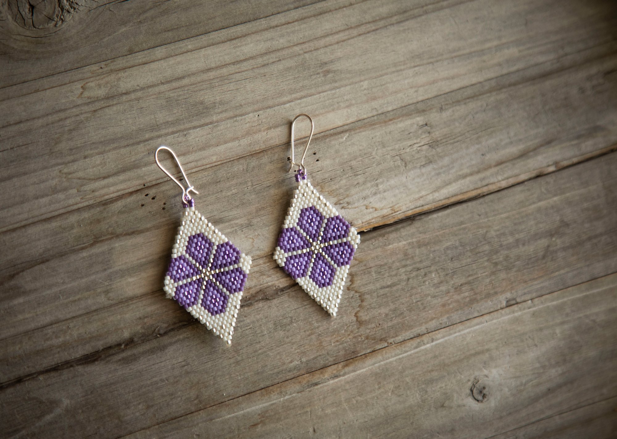 Stunning hand-beaded (brick stitch) earrings made with the finest Miyuki/ Delica beads, which create an elegant, lightweight, and unique style. Hooks are made of SOLID 925 Sterling silver (unmarked).