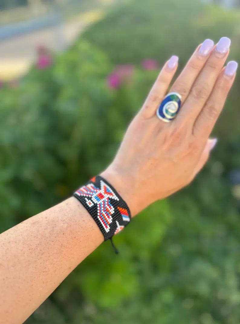 Beautiful loom-made bracelet done with high-quality glass beads. Each bracelet is one of a kind and true piece of art. All done by hand. This bracelet is unisex.