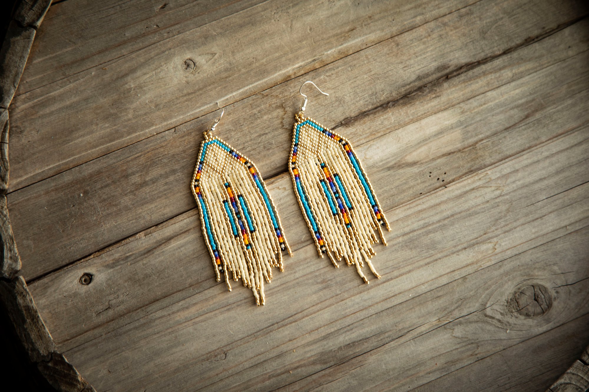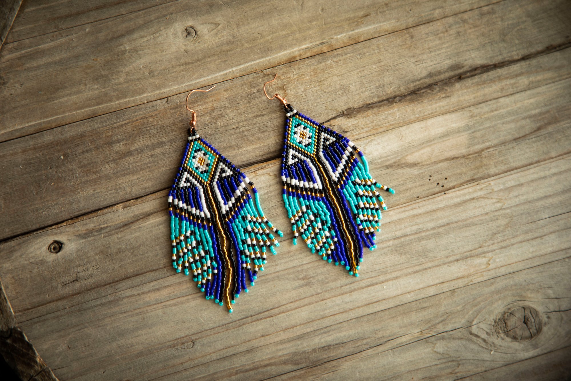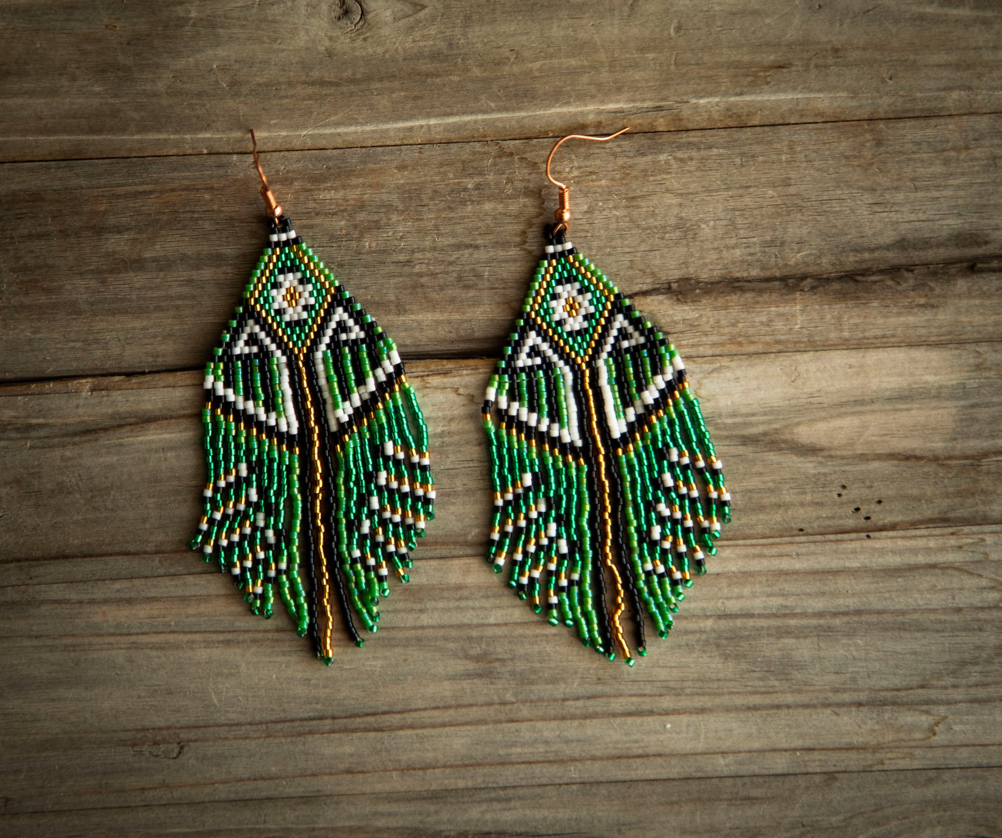 Stunning hand-beaded Huichol earrings made with the finest Miyuki beads, which creates an elegant, lightweight, and unique style. These earrings are beautifully made by our team of Wikarika women from Nayarit. One of a kind. 100% Indigenous made.